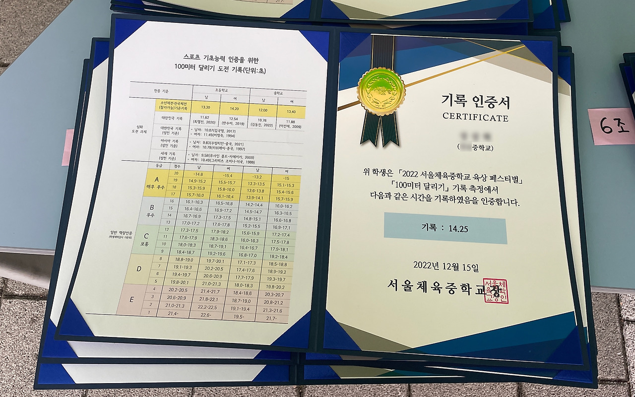 그런데, 때로는 어떠한 기준을 설정하지 않더라도 단지 양질의 경험과 신뢰도 높은 기록을 인증해주는 것만으로도 교육적 효과를 달성할 수 있다는 사실을 잊고 있었다. 최근의 나는 코로나를 거치면서 위축된 초등학생 체육, 모든 움직임의 기초가 되는 가장 중요한 종목임과 동시에 점점 더 체육 수업 내 비중이 줄어들어가고 있는 육상 종목을 활성화 할 수 있는 방법이 무엇일까 고민하고 있었다. 마침, 이런 고민을 풀어낼 수 있는 사업을 기획할 수 있는 기회가 있어 근무하고 있는 교육지원청 관내의 서울체육중학교가 가지고 있는 육상의 전문적 역량을 활용한 「서울체육중학교 육상 페스티벌」을 기획하고 시행할 수 있었다.