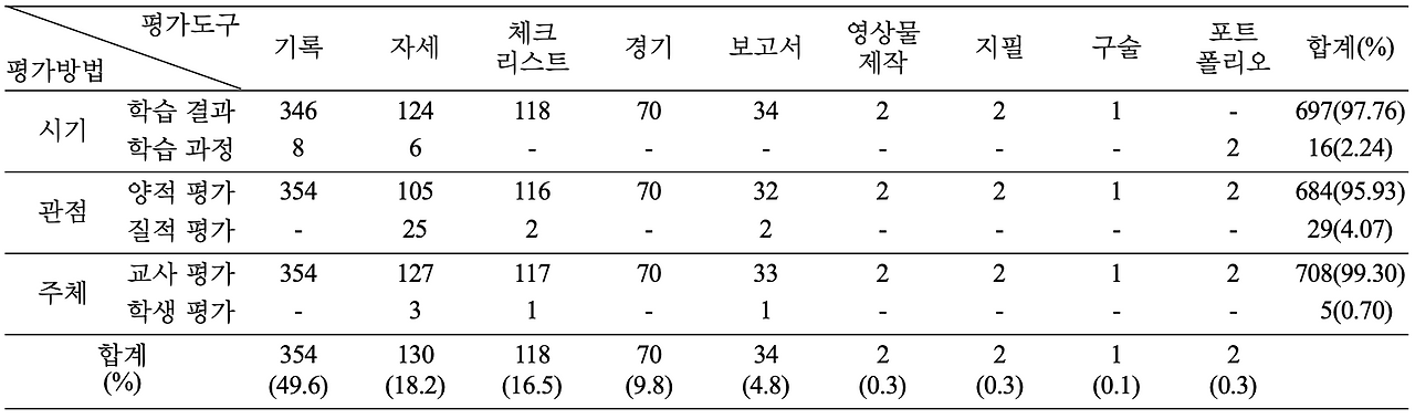허태윤, 이규일(2021). 2015 개정 교육과정에 따른 중학교 체육과 평가 실태 분석: 연간 평가계획서 중심으로. 교과교육학연구 제25권 제5호.