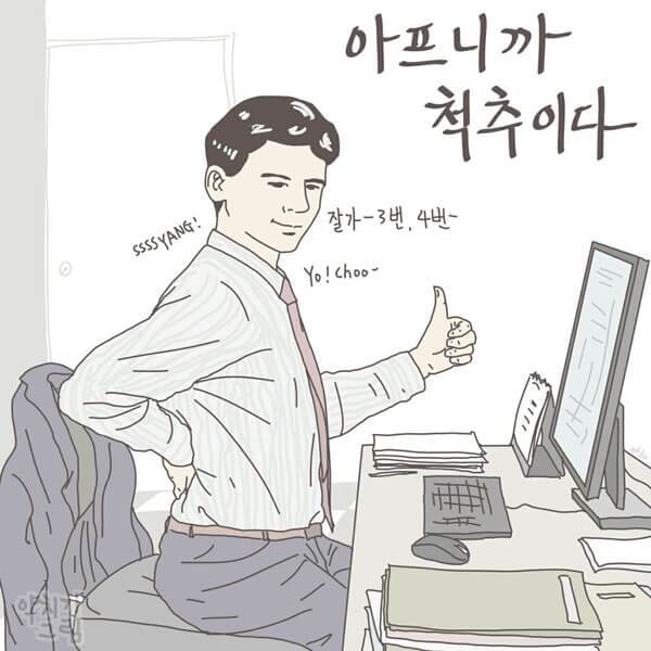 가장 두려웠던 디스크의 재발은 점심시간 산책으로 간신히 막아내고 있는 중이다. (출처: 양경수 작가 페이스북 '그림왕 양치기의 약치기 그림')