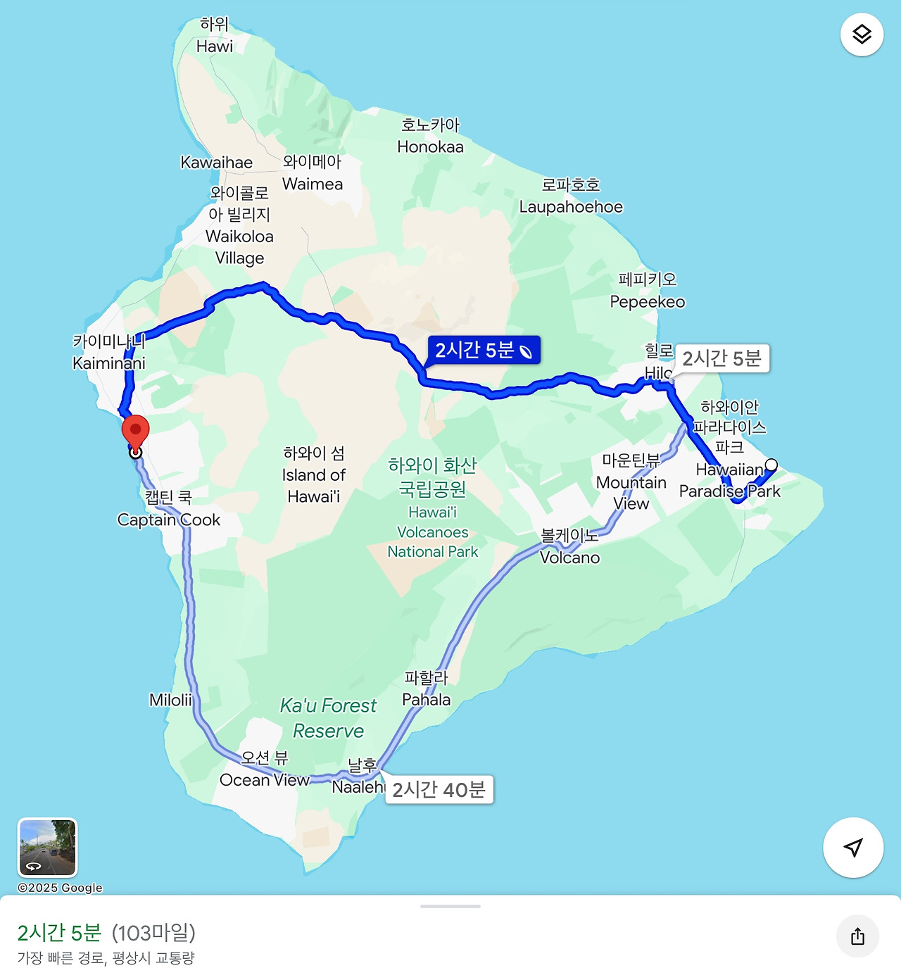 나는 이 섬에 오기 전까지 구글 지도로 주요 지점들만 저장해 두었지, 실제로 그 거리가 얼마나 되는지 이동 경로는 어떻게 되는지를 살펴보지 않았었다. 그래서 거리가 얼마나 되는지 시간은 얼마나 걸리는지 감히 계산을 하기가 어려웠다. 그냥 모르고 출발하는 것이 또 여행의 묘미라며, 무턱대고 구글 지도 앱에 의지하여 운전을 시작했다.