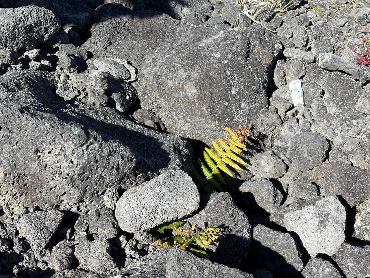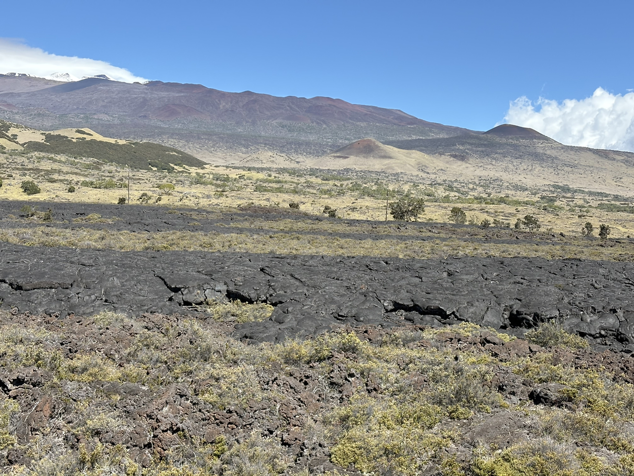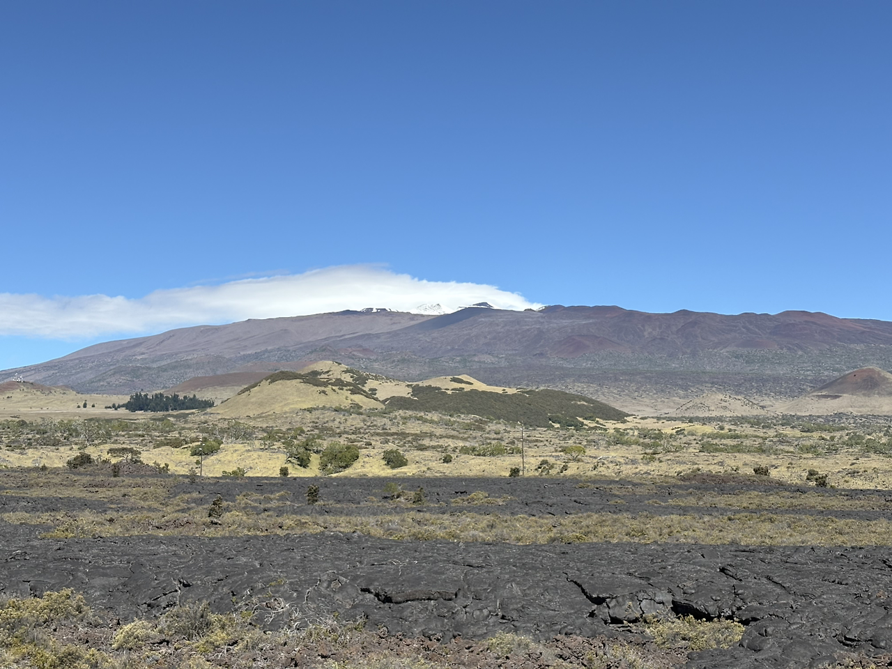 운전을 하면서 주변이 눈에 들어오기 시작하자, 그 놀라운 풍경에 감탄사가 계속 나왔다. 우리 나라에서는 그 어디에서도 볼 수 없는 풍경들이었기 때문이다. 그 와중에 귀가 멍해졌다가 괜찮아졌다하는 느낌이 반복되었다. 고지대라는 의미였다. 나는 운전 중 수시로 아들에게 스마트폰의 고도계 앱을 확인하라고 했다. 제주에서 1100도로를 지나갈 때만 해도 높다고 했었는데, 2000미터가 훌쩍 넘는 높이라는 사실이 믿어지지 않았다. 너무나도 맑은 날씨에 도로 양 옆으로 북쪽의 마우나케아 남쪽의 마우나로아 모두 너무나도 잘 보였다. 중간에 한 번 멈추기는 했지만, 멈출 수 있는 구역이 제한되어 있어 아쉬움이 컸다.