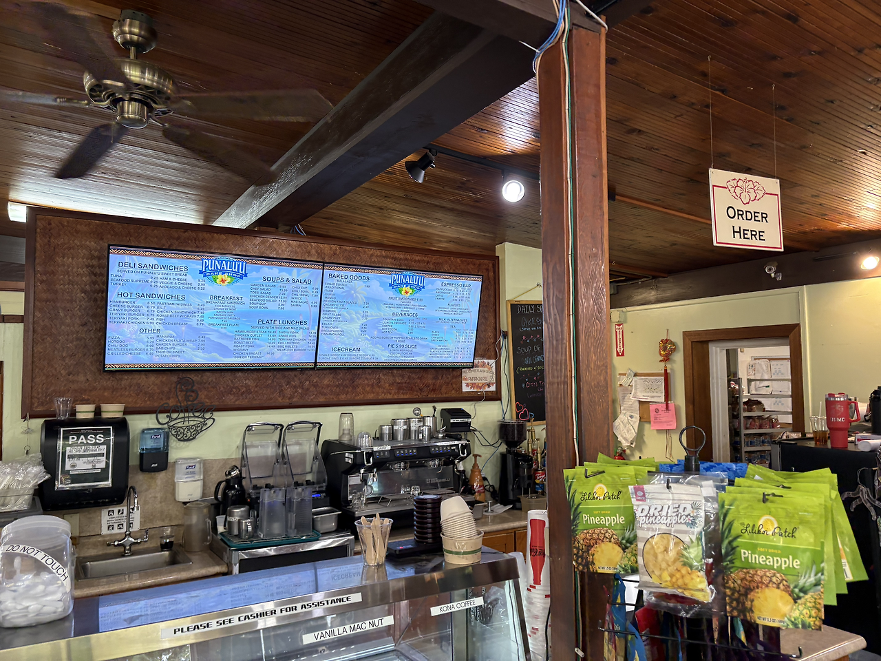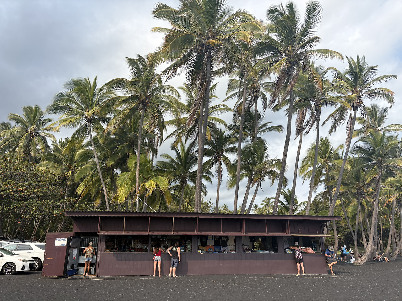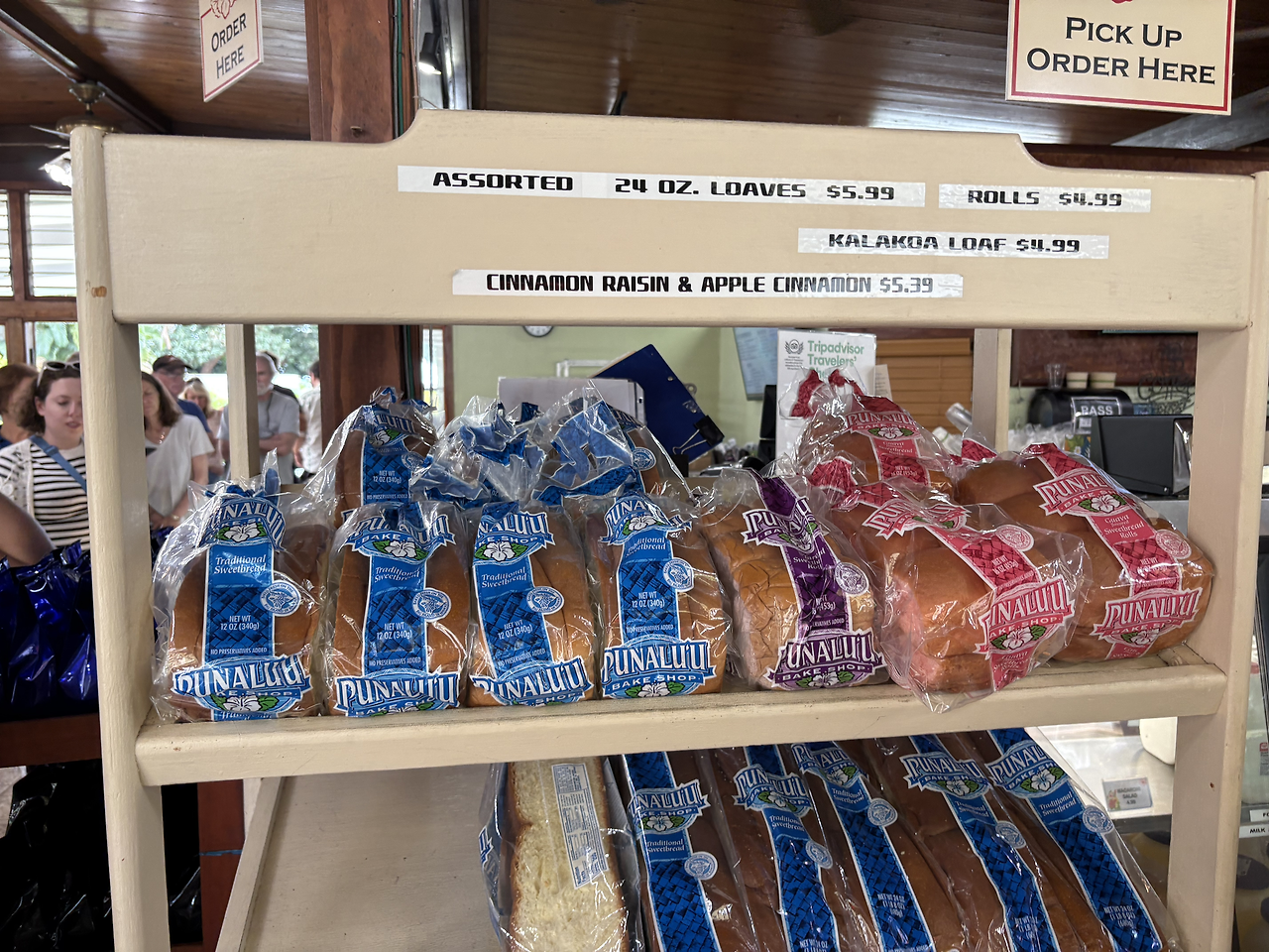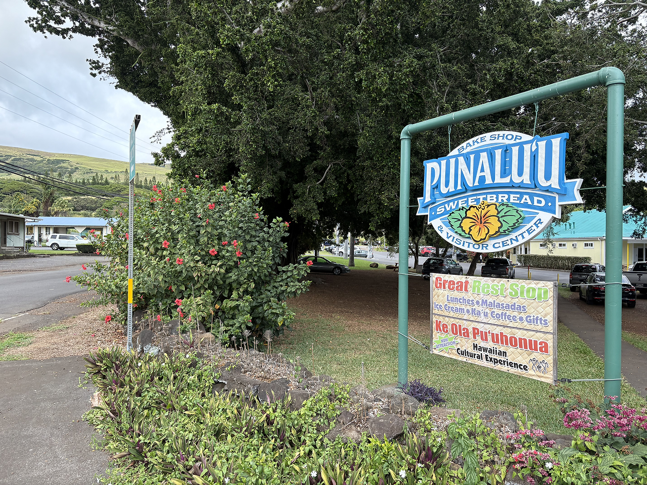 블랙샌드 비치로 가는 길에 유명한 빵집 '푸날루 베이크 숍(Punalu'u Bake Shop)'이 있다고 하여 잠시 들르기로 했다. 우리나라 여행 책자에만 나오는 빵집이 아닌 모양이었다. 세계 각국의 정말 많은 사람들이 모여있었다. 커피 문외한이라 잘 몰랐다가 이번에 현지에서 알게 된 사실인데, 빅아일랜드 남부 지역 커피 즉 '카우 커피(Ka'u Coffee)'는 화산 토양에서 자라 독특한 맛을 자랑한다는 한다. 이 커피와 함께 달달한 빵을 파는 곳으로 많은 사람들이 찾아오는 곳이었다. 내 입맛에는 빵도 아주 맛있었다.