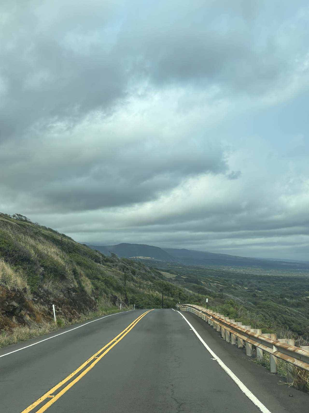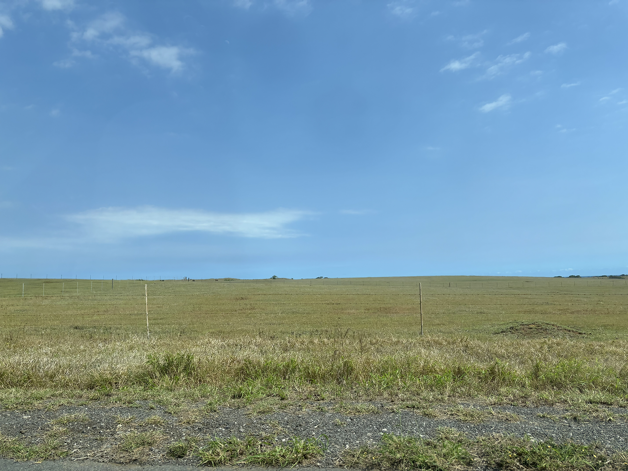 사우스포인트로 접어드는 지역은 평원이라고 표현해도 될 정도의 초지가 나타났다. 라인도 그려져 있지 않은 시골길 양 옆으로 소, 양, 말 등을 키우는 농장이 반경 5~6Km 정도 끝없이 펼쳐져 있었다. 저 멀리 북쪽에는 마우나로아가 보이고, 북서쪽으로는 멋진 산세와 해안선이 보이는 정말 멋진 풍경이었다.