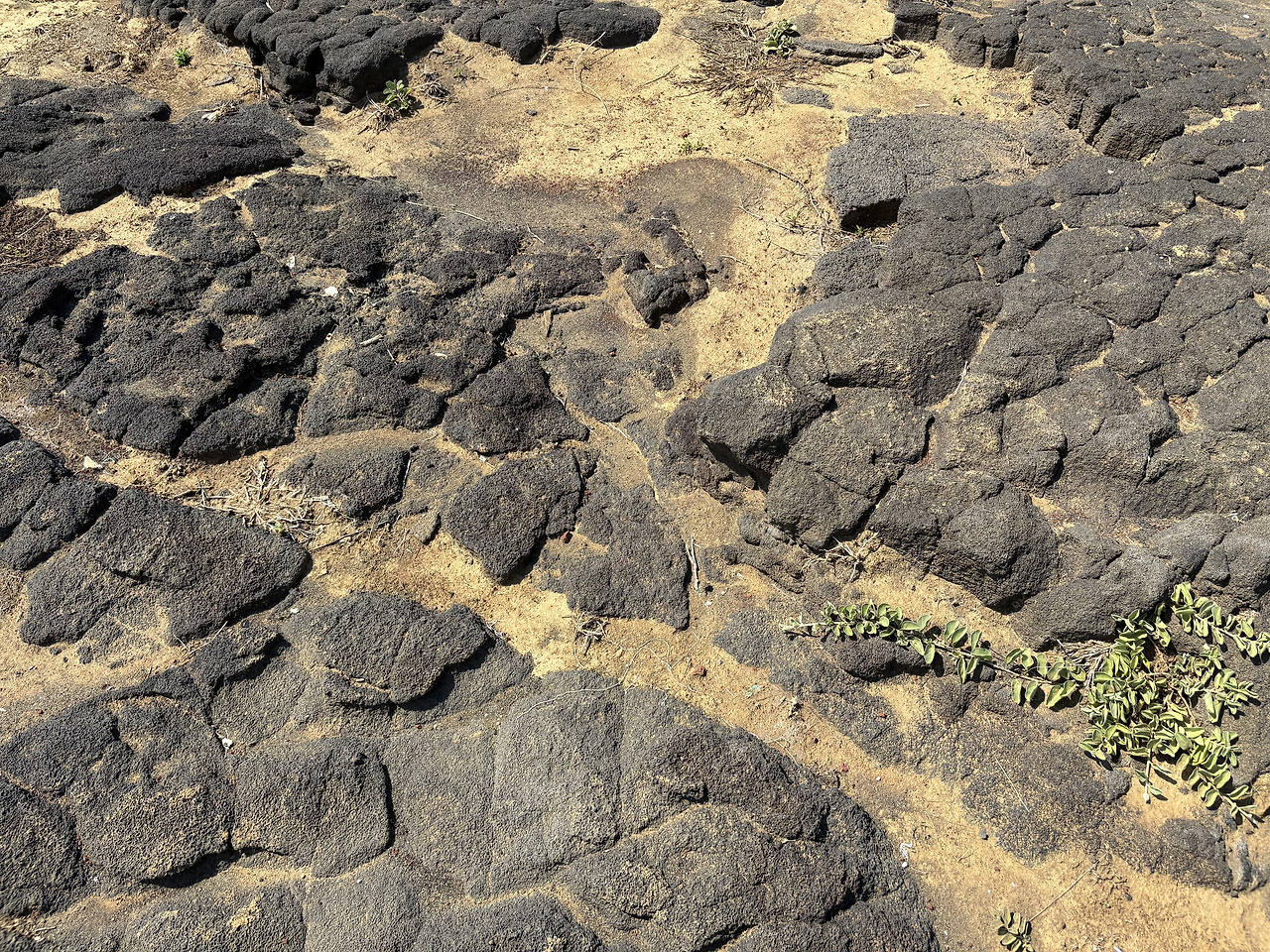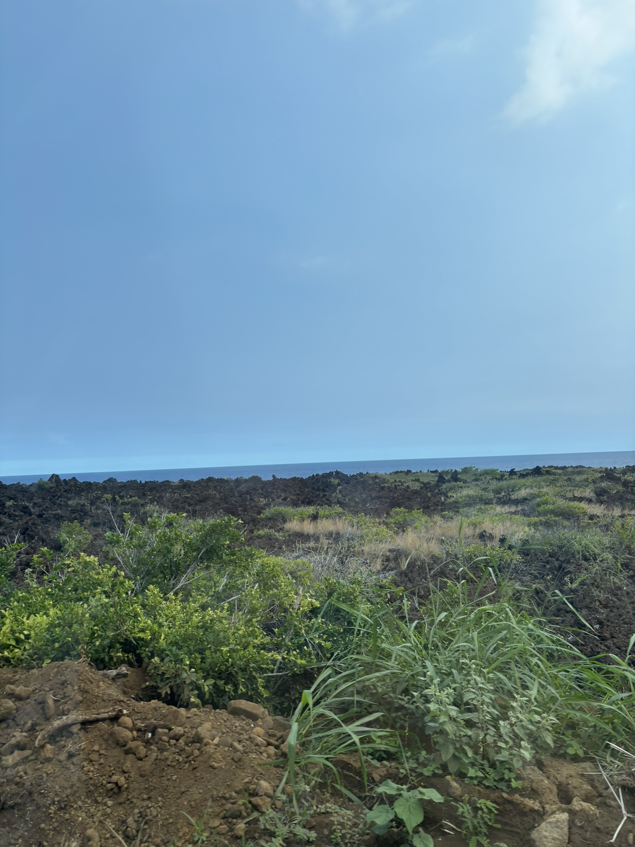 일단 본격적인 남쪽 해안을 보기 전까지 한 시간 정도는 화산국립공원을 지나오는 길이었다. 화산국립공원을 지나면 30분 정도 용암 지대가 계속 된다. 지명을 보니 '카우(Kaʻū)'라는 지역이었는데, 그 풍경이 참 독특하면서도 황량했다. 비교적 최근까지 용암이 휩쓸고 지나간 자리는 바위라고 하기에는 아직 충분히 딱딱해지지 않아 쉽게 부서지는 검은 흙들이 아무렇게나 쌓여있는 느낌이었다. 멀리서 보면 지금도 용암이 흐르고 있는 것처럼 보이는 장관이었다. 이 지역의 트래킹 코스 이름이 바로 '카우 사막(Kaʻū Desert)'이었다. 나중에 다시 검색해보니 화산국립공원 크레이터 림 드라이브 남쪽 끝에 있는 '데바스테이션 트레일(Devastation Trail)' 코스와 비슷한 풍경인 듯했다. 궁금하기는 했지만, 아이들과 함께 하는 가족여행인지라 몇 킬로미터 되는 트레일 코스들은 소화할 수 없어 조금 아쉽기는 했다.