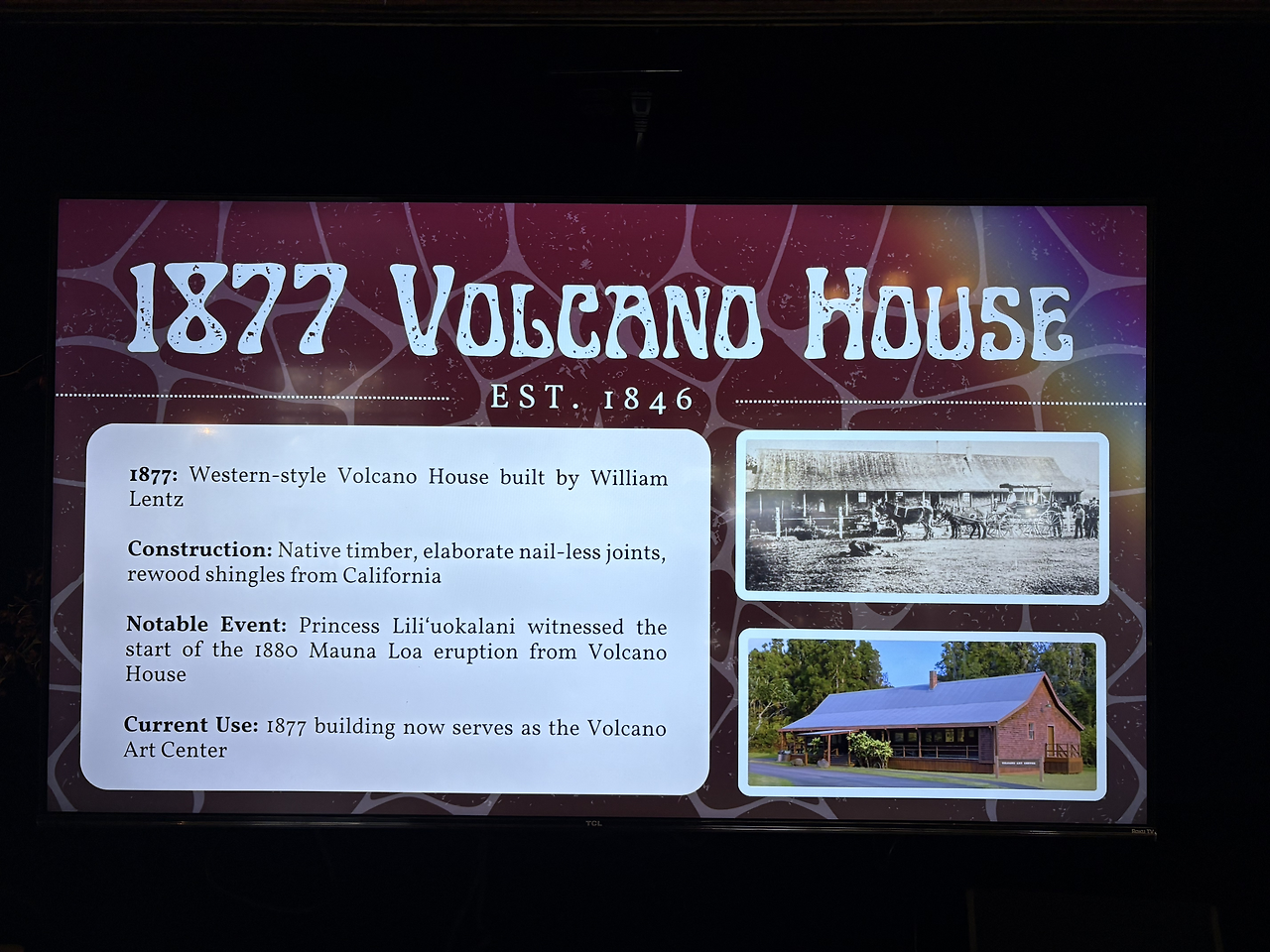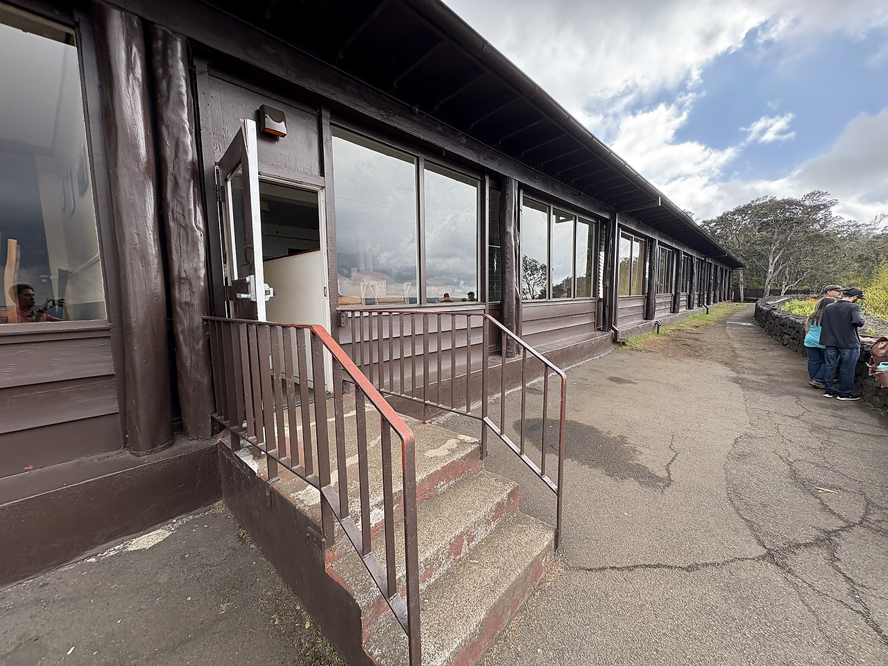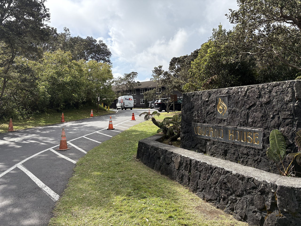 우리는 혹시나 하는 마음에 메인 전망대인 '볼케이노 하우스(Volcano House)'를 우선 방문하였다. 볼케이노 하우스는 방문자 센터 바로 옆에 있는 호텔이다. 볼케이노 하우스에 위치한 '더 림(The Rim)'이라는 이름의 레스토랑에서는 식사를 하면서 킬라우에아 분화구를 감상할 수도 있다. 호텔의 객실 역시 화산 분화구 뷰를 그대로 즐길 수 있다고 한다.