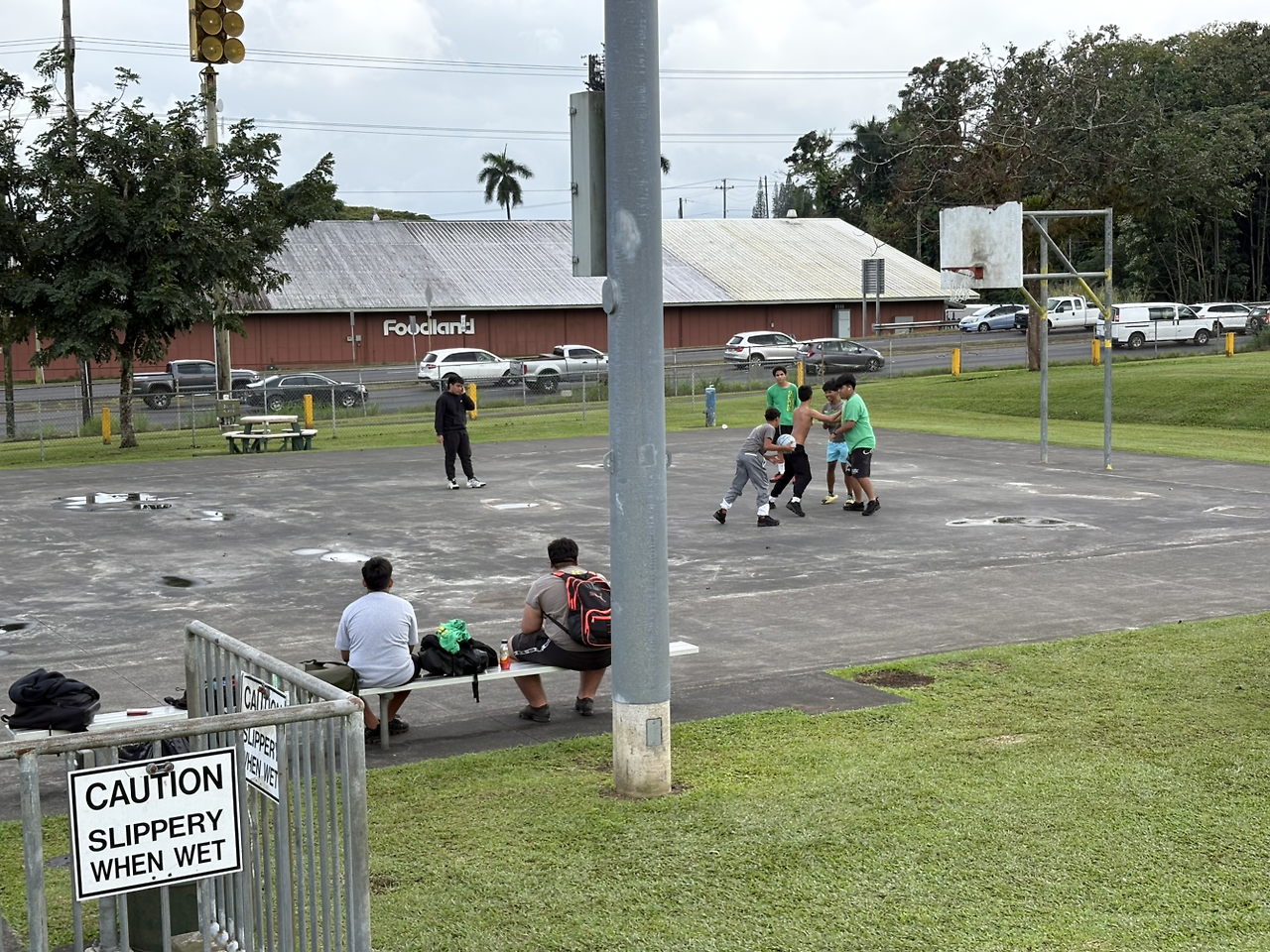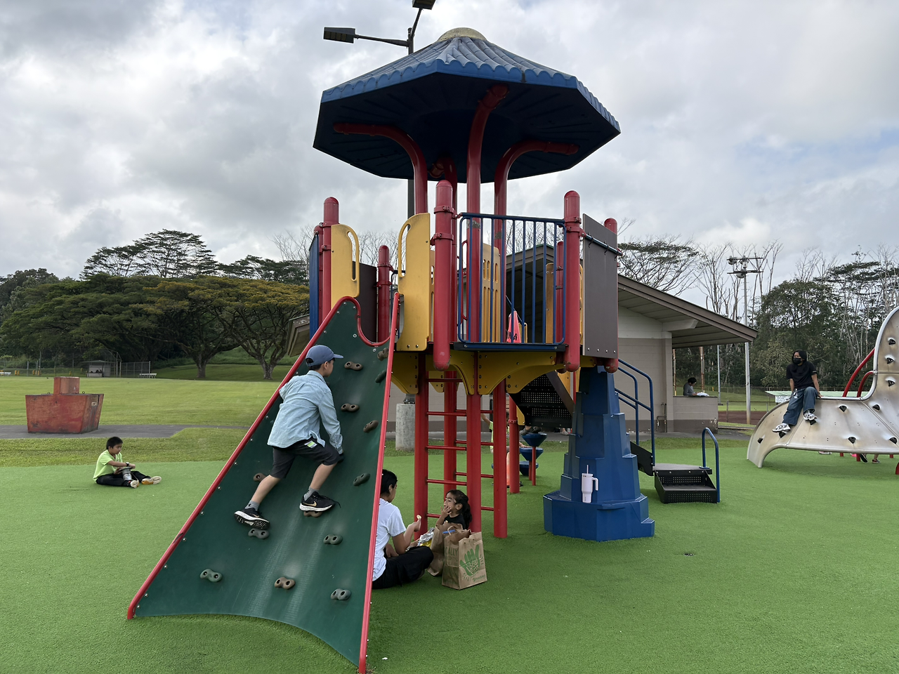 이 섬에서의 일주일 경험 상, 스쿨버스의 이동으로 유추해 본 아이들의 등교시간은 7시 전후다. 하교 시간은 역시 스쿨버스의 이동 빈도로 보면 대략 2~3시 정도인 듯했다. 우리가 이 공원에 도착한 시간은 15:30경이었는데, 교복 성격의 똑같은 티셔츠를 맞추어 입은 초등학생과 중학생들이 삼삼오오 공원에 모여 여유있게 놀고 있었다. 농구, 미식축구, 야구, 테니스 등의 스포츠를 하는 아이들도 있었고, 놀이터에서 놀거나 현지 아이들이 즐기는 정체불명의 놀이를 하는 아이들의 모습도 보였다. 말 그대로 우리네 40~50대의 어린시절 처럼 동네 친구들이 모여서 편안하게 놀고 있는 장면이었다.