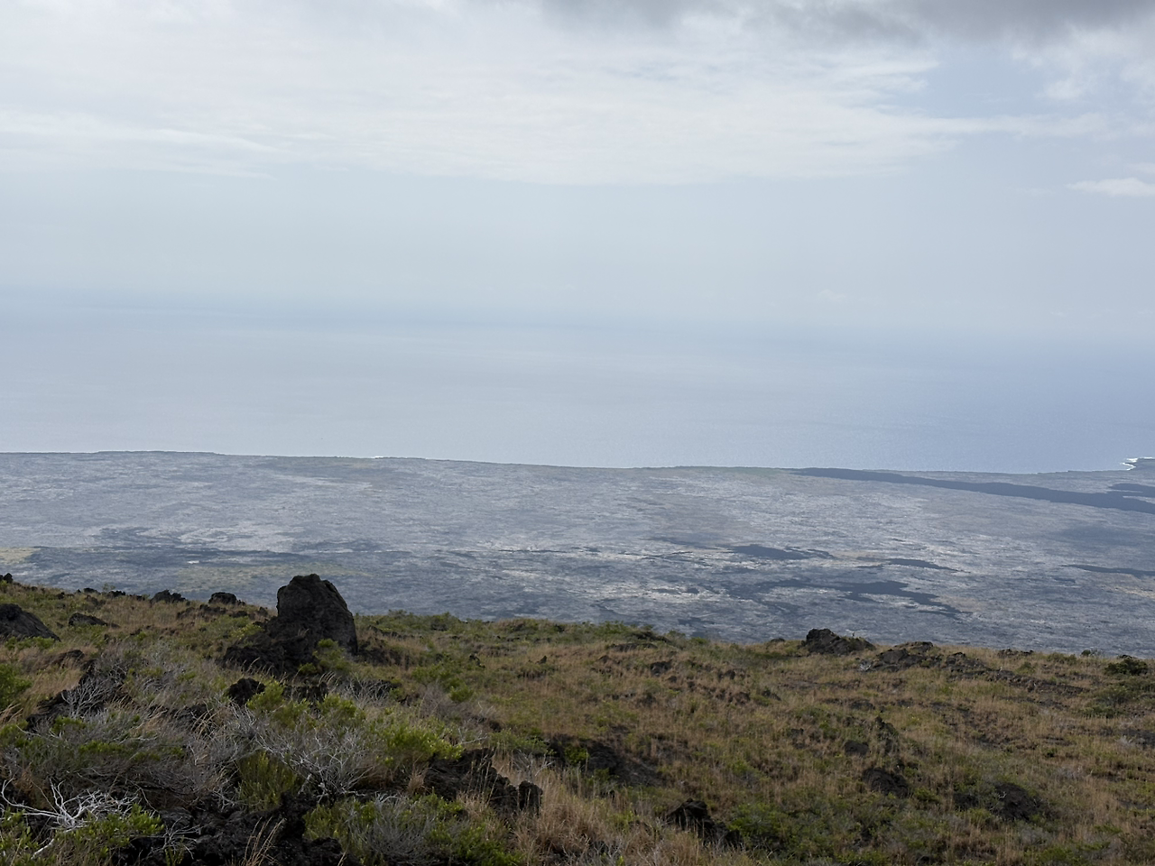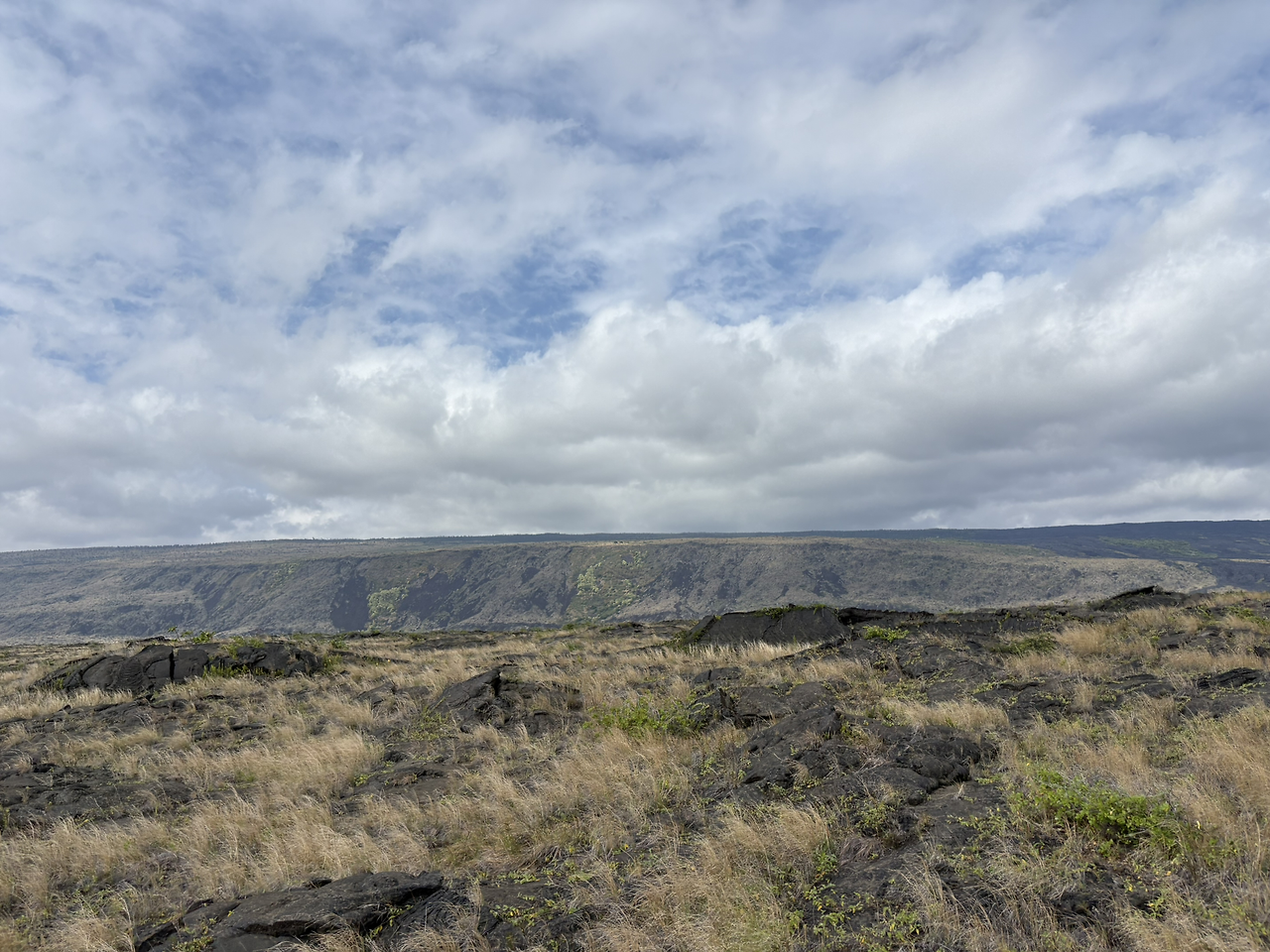 분화구는 아주 작은 규모부터 엄청나게 큰 규모까지 다양했다. 큰 분화구의 경우에는 깊이가 백미터는 되는 것처럼 느껴졌고, 분화구의 면적 역시 수백미터는 되는 듯 보였다. 용암 지대 역시 오래 전 흐르다 멈춘 것처럼 보이는 곳부터, 바로 어제까지 흐르던 용암처럼 느껴지는 곳까지 다양한 모습이었다. 어떤 포인트에서는 각도에 따라 저 멀리 마우나로아가 높게 보이기도 했다. 이런 풍경을 지구상 어디에서 또 볼 수 있을지 모르겠다. 너무나도 귀한 풍경을 잊지 않으려고 열심히 두 눈에 담고 머리에 새겼다.