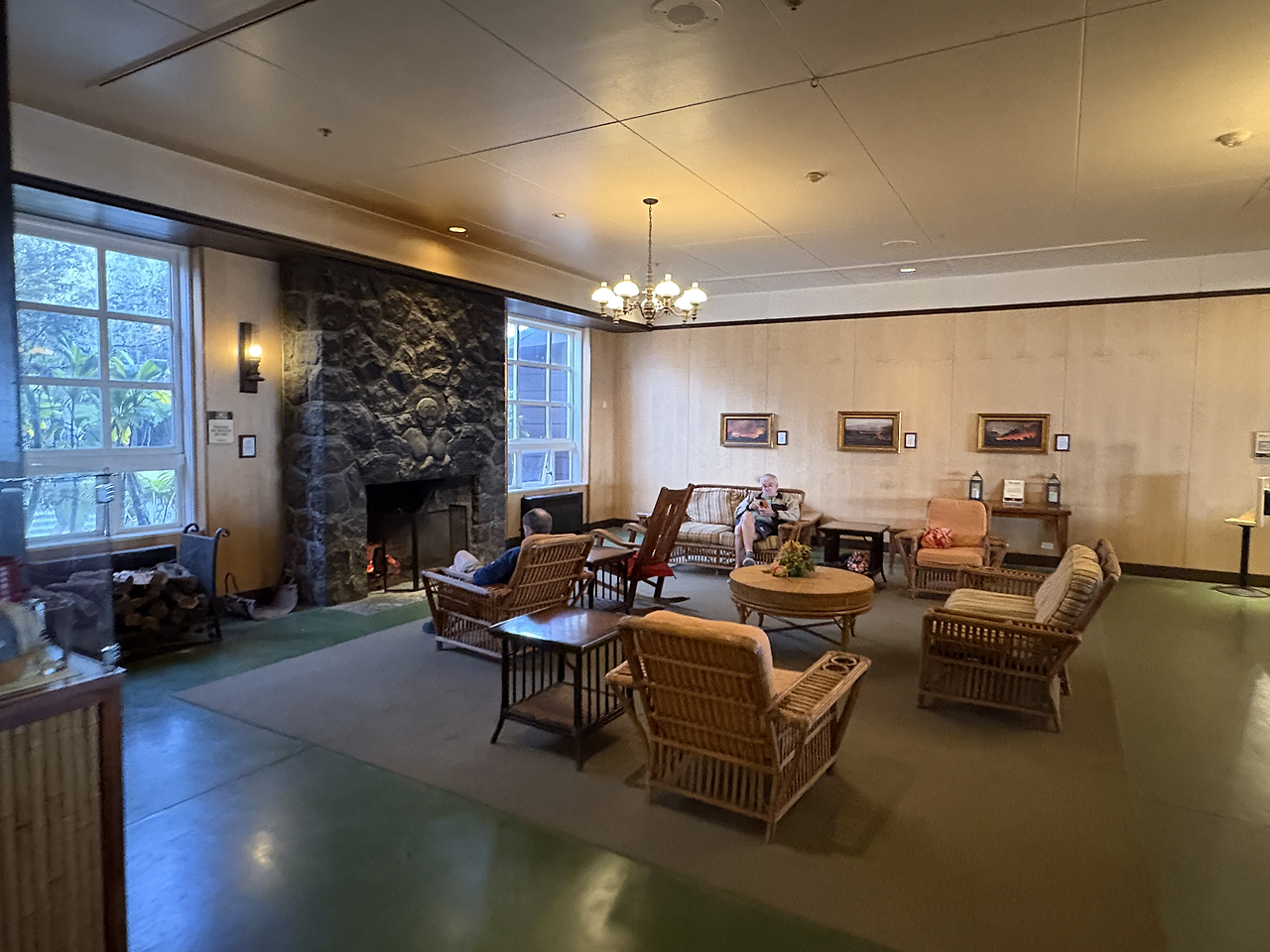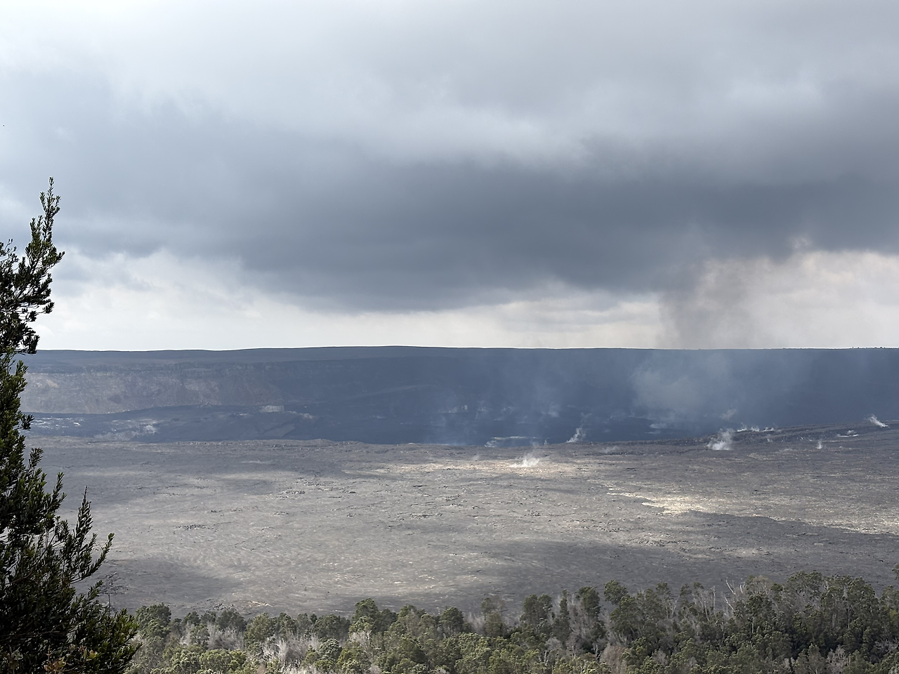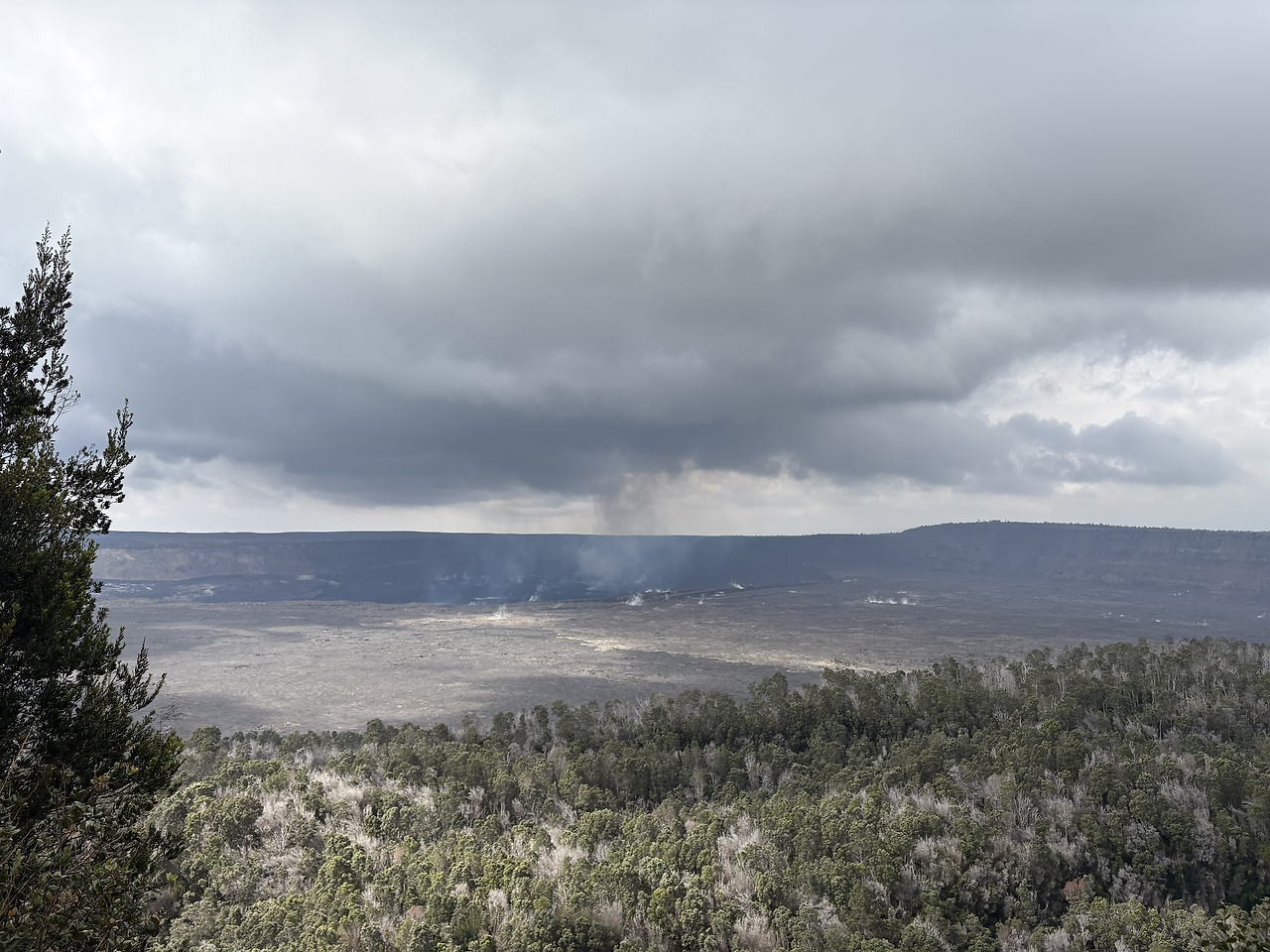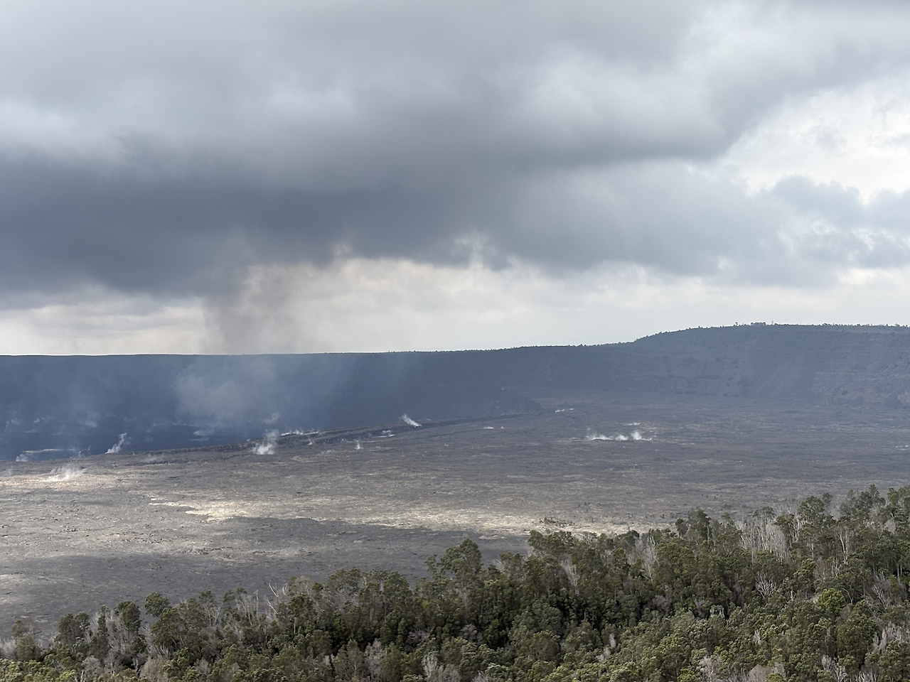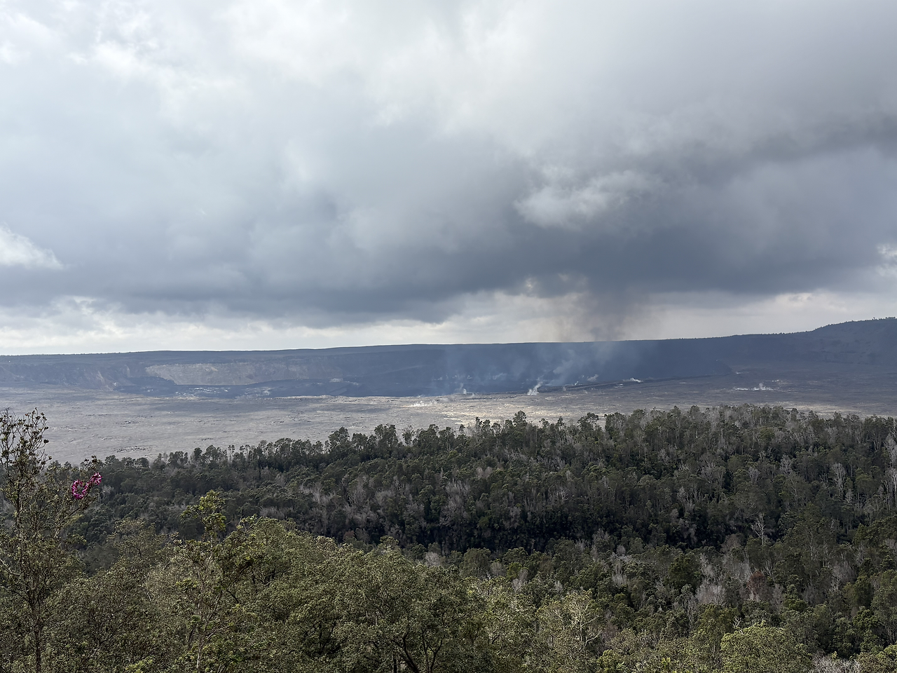 우리의 목적은 호텔 시설을 즐기는 것이 아니라, 볼케이노 하우스가 품고 있는 전망대에서 킬라우에아 분화구를 감상하는 것이었다. 사실 지난 일정에도 볼케이노 하우스 전망대에 잠시 들러 분화구가 잘 보이는지 확인은 했었다. 비가 부슬부슬 오던 그 날의 그 시간 타이밍에는 분화구 전체를 안개가 덮고 있어 제대로 볼 수 없었다. 오늘의 날씨는 맑은 듯 흐린 듯 왔다갔다하는 분위기였는데, 걱정과는 다르게 너무나도 잘 보여 환상적인 경험을 할 수 있었다. 이 멋진 광경을 눈으로 볼 수 있다니, 너무나도 감사했다.
