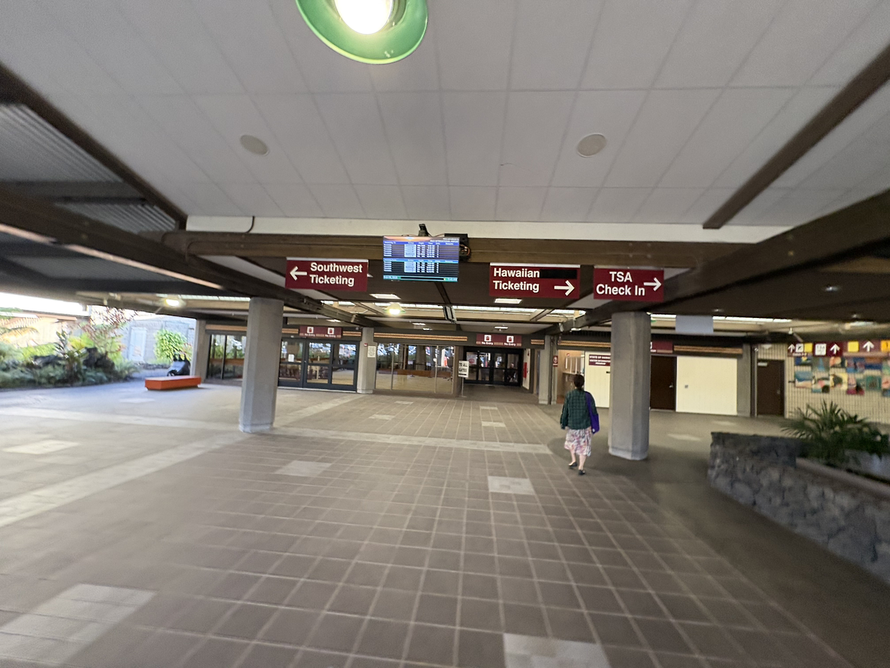 여기로 오던 날은 렌트카 사무실 마감 시간에 쫒겨 공항을 제대로 둘러보지 못했었다. 오늘에서야 여유있게 공항을 둘러볼 정신이 생겼다. 힐로 공항은 국제선도 이착륙하는 공항이지만, 규모는 아주 작다. 탑승객이 대기하는 공간 역시 입국과 출국의 구분 없이 하나의 공간을 공유한다. 공항 안에는 빅아일랜드의 상징인 바다거북 조형물과 관련 관광상품을 판매하는 소매점 하나 정도가 있었다. 규모가 아주 작은 공항이니 면세점 등이 자리하기에는 어려움이 있을 것 같다.