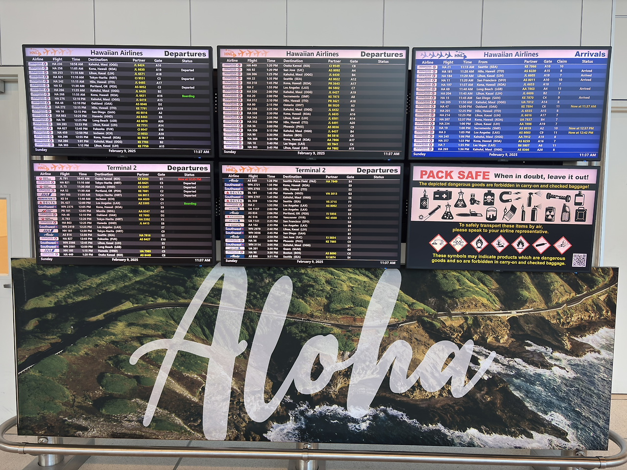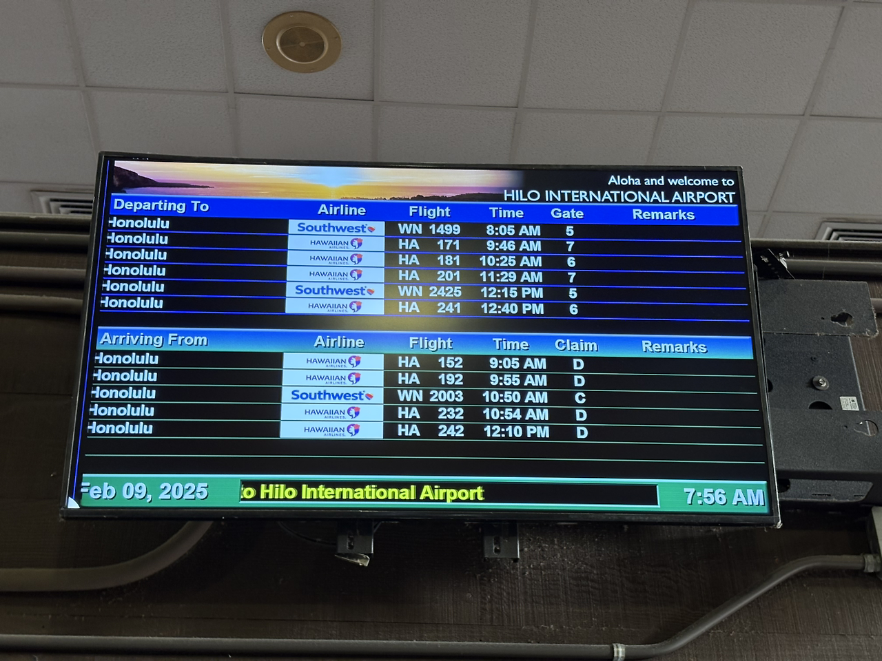 하루 종일 비행기를 타야 하는 날이다. 하와이 빅아일랜드로 오는 날, 항공편이 연착에 연착을 거듭하여 공항에서만 10시간 가까이 대기하느라 힘들었던 기억이 떠올랐다. 오늘 힐로에서 비행기가 떠나는 시각은 10:00였다. 집으로 돌아가는 길이 어떻게 진행될지 모르겠지만, 일단 두 시간 전에 힐로 공항에 도착했다. 공항은 정말 한산했다. 걱정과는 다르게 맑은 날씨로 비행기는 정시 이륙을 예고하고 있었다. 짐을 부치고 보안을 통과하는데 걸리는 시간이 10분도 되지 않았을 정도였다. 항공사 직원의 말로는 힐로에서 보낸 짐이 자동으로 호놀루루 환승편으로 연계된다고 하였다. 호놀룰루 공항에서는 내 몸만 환승하면 된다는 의미였다. 마음이 가벼워졌다.