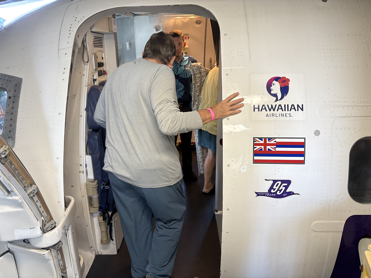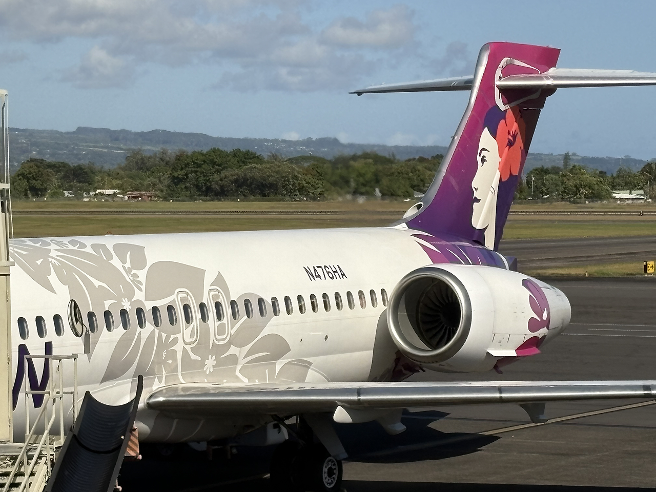하와이 주 안의 섬들간 운행하는 항공편을 '주내선'이라고 한다. 주내선은 거의 모두 하와이안 항공의 비행기들에 의지하는 모양새였다. 내가 탑승했던 비행기는 보잉 B717 비행기로 100명이 조금 넘는 인원이 탑승하는 중소형 항공기였다. 주내선 비행기는 대부분 이정도 수준인 듯 보였다. 일반석은 가로열 당 5석(2-3)으로 객석이 구성되어 있었다. 좌석은 별도의 편의기능 없이 단순했지만, 좁은 편은 아니었다. 호놀룰루에서 힐로까지의 비행시간은 30분 정도 되는 느낌이었다. 탑승 게이트에서 수속하여 좌석에 착석완료한 시간을 기준으로 공항에 착륙하여 탑승자 대기실로 나오기 까지 총 소요시간이 1시간 정도였다. 비행 시간 중에는 총 1회 정도 이미 포장되어 있는 주스 또는 물을 제공해 주었다.