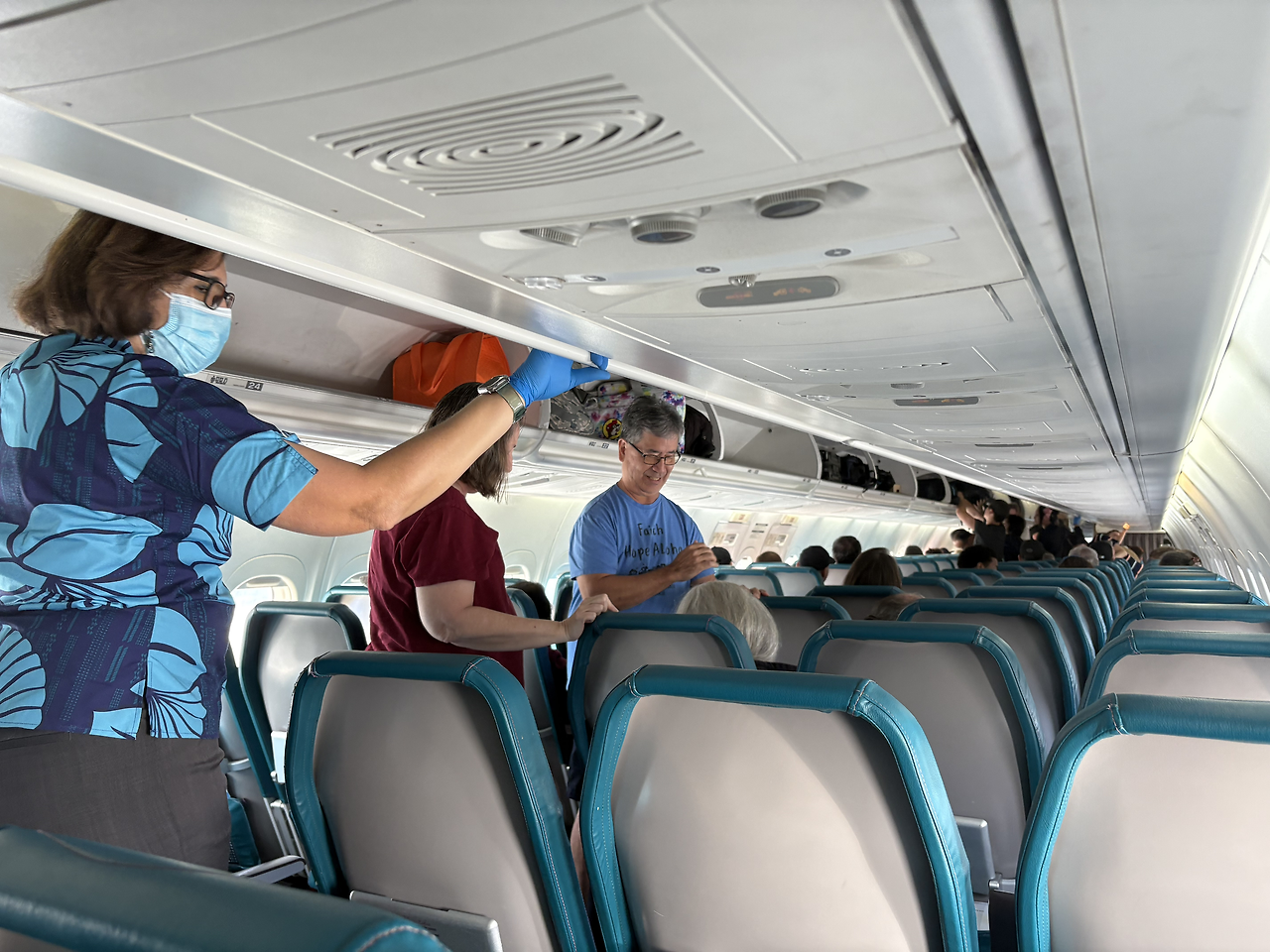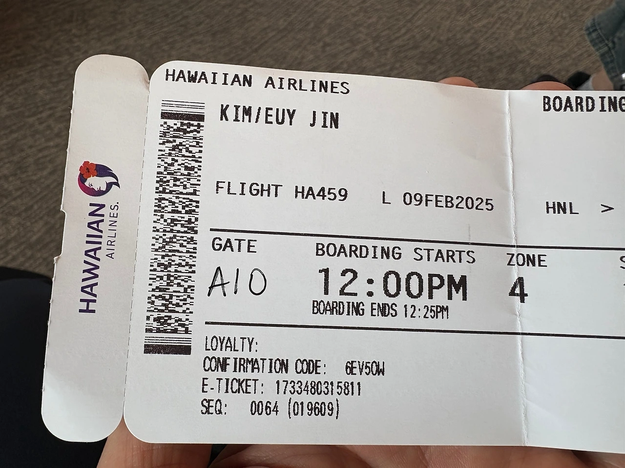 인천에서 하와이 빅아일랜드 섬의 힐로 공항이나 코나 공항 직항편은 없는 것으로 보인다. 즉, 대한민국에서 하와이로 가려면 오아후 섬의 호놀룰루 공항을 통해야 한다는 뜻이다. 대한민국 국적 항공사의 하와이행 일정은 평균 하루 한 편 정도 있다. 시간대를 고려하여 항공편을 선택하다보면, 자연스럽게 '하와이안 항공(Hawaiian Airlines)'의 비행기를 예약하게 된다. 미국 국적기이기에 이용하는데 부담이 있을 줄 알았는데, 인천공항의 직원들부터 호놀룰루 공항의 직원들까지 한국어를 잘 하는 직원이 적절하게 배치되어 있어 불편함이 없었다. 비행기 승무원들 역시 웬만한 한국어는 알아듣는 눈치였다.