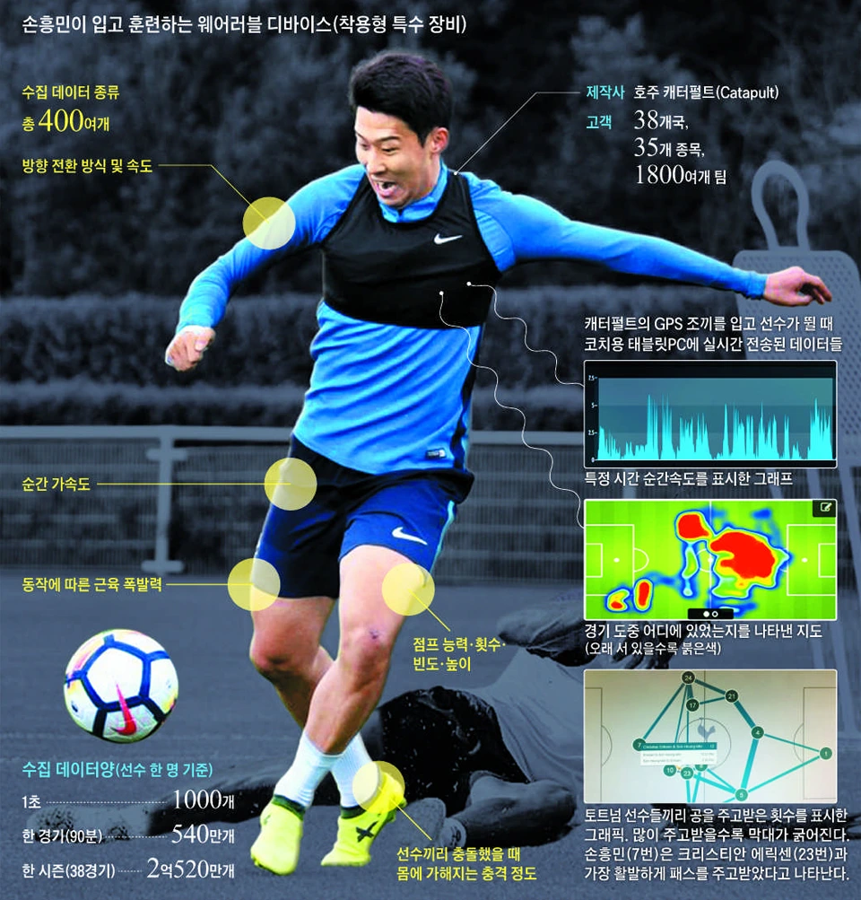 지구촌에서 가장 사랑받는 스포츠인 축구 역시 마찬가지다. 불과 십여 년 전만 해도 축구 경기 중계방송에서 전반전이 끝나면 경기의 하이라이트를 보여주며 해설가가 말로 경기내용을 설명해 주는 것이 일반적이었다. 경기 관련 통계 역시 다양하지도 않고 신뢰하기도 어려웠다. 경기의 점유율을 보여준다고 해도 누가 측정하느냐에 따라 달라지는 정확한 수치는 아니었으며, 그나마 믿을 수 있는 수치라고는 슈팅 시도 횟수, 파울 수, 경고나 퇴장 수 등의 간단한 카운팅에 불과했다. 하지만, 언젠가부터 경기 영상을 분석하는 자동화된 알고리즘을 이용하여 실시간으로 데이터를 만들어내기 시작했으며, 최근에는 보다 정확한 데이터를 수집하기 위하여 선수의 경기력에 방해가 되지 않는 범위에서 다양한 센서를 직접 활용하기 시작했다. 덕분에 우리는 축구 경기를 이해할 수 있는 더욱 많은 데이터를 수집할 수 있게 되었고, 이를 통해 축구 문화를 더욱 풍성하게 누리고 있다.