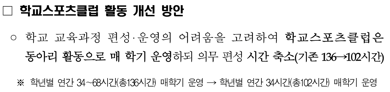 중학교 체육 교육과정: 교육과정 내 학교스포츠클럽활동 기준시수 감축
