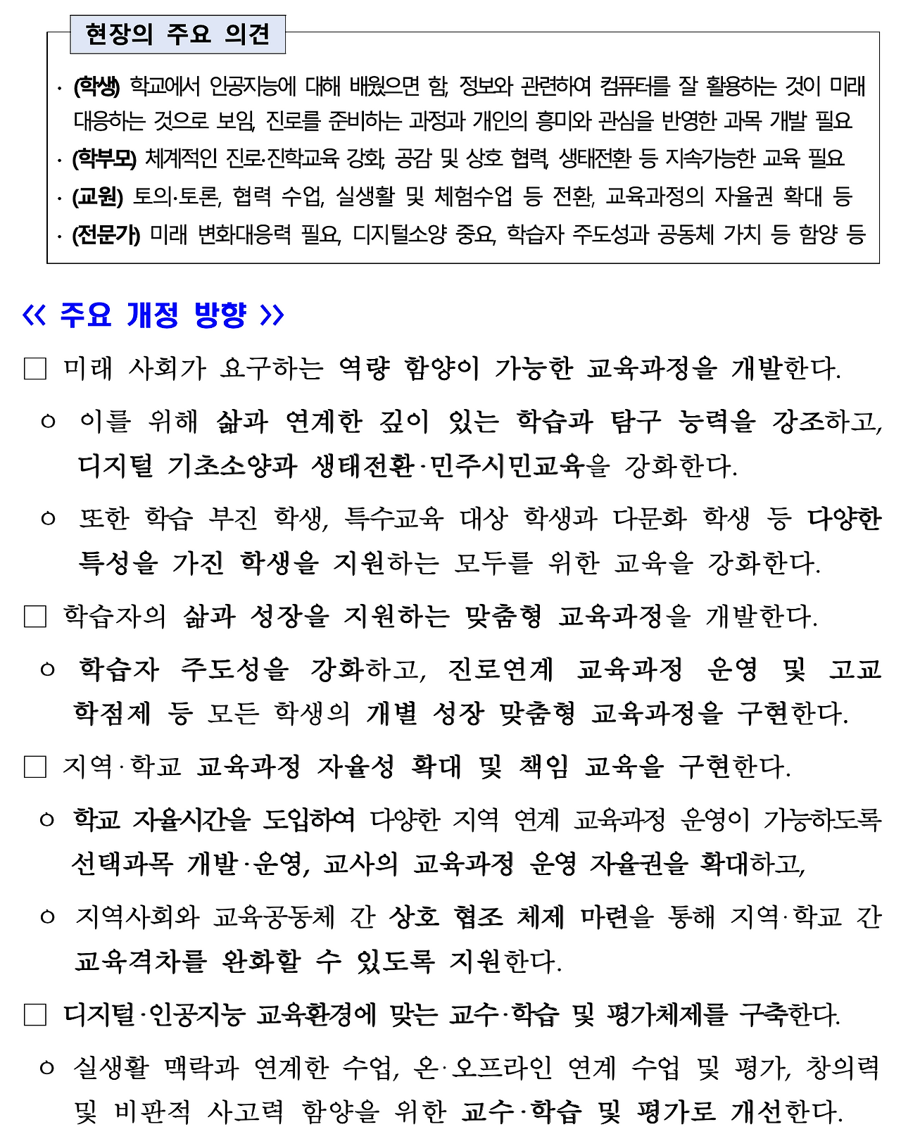 2022 개정 교육과정의 주요 내용