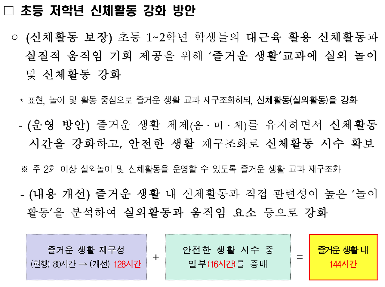 초등학교 체육 교육과정: 신체활동 강화