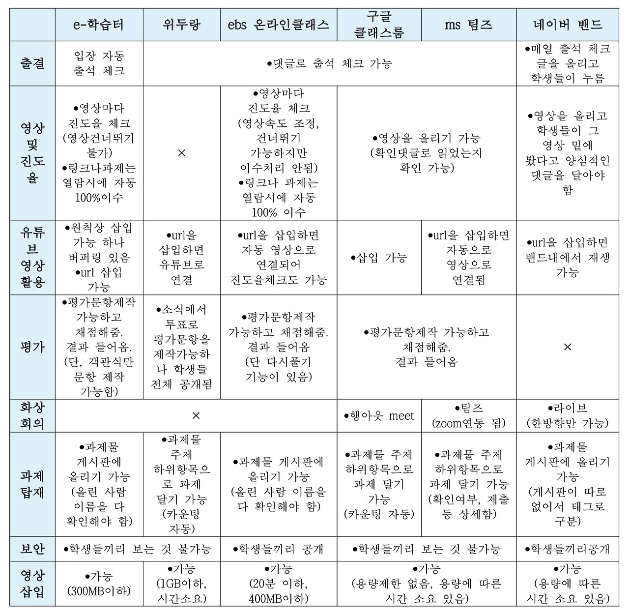 학교 현장에서 원격수업 플랫폼을 결정하는 회의를 할 때 다음과 같은 물음을 던지는 분들도 있었다고 들었다.