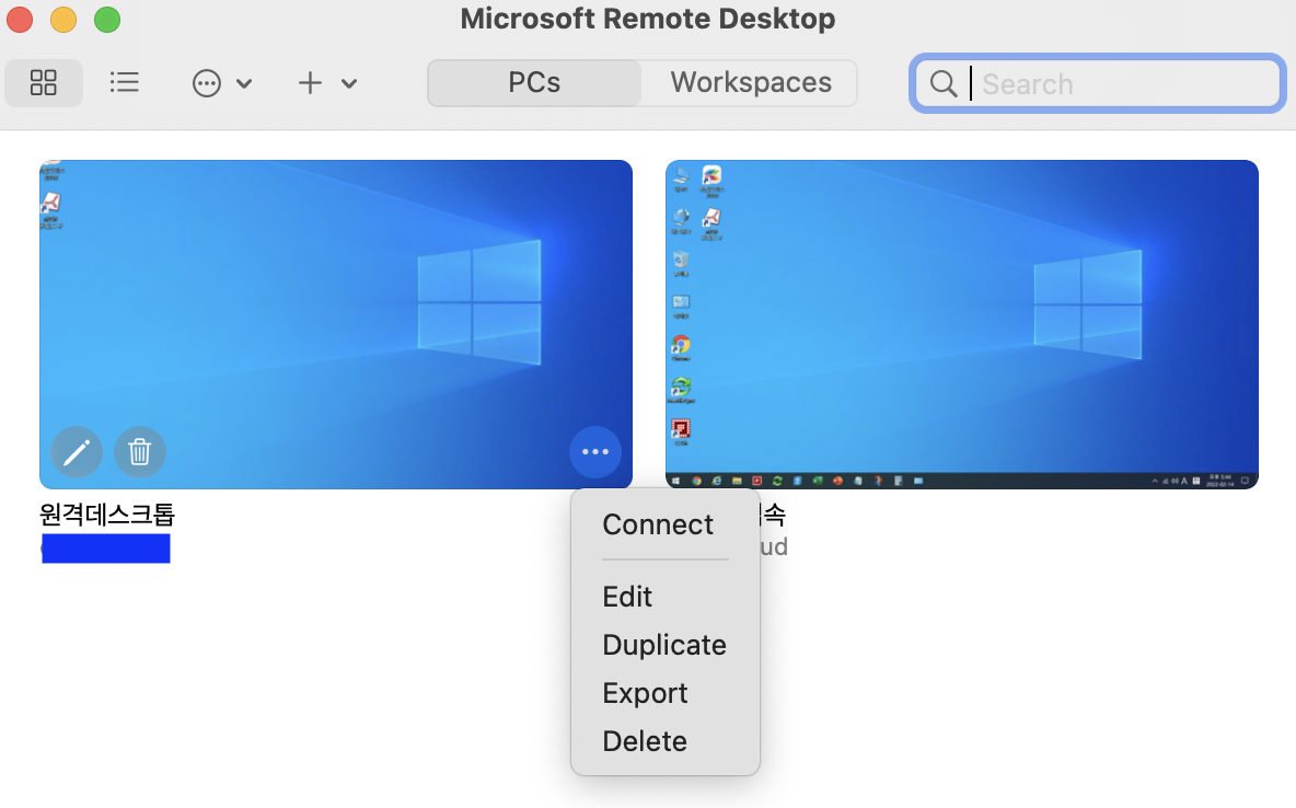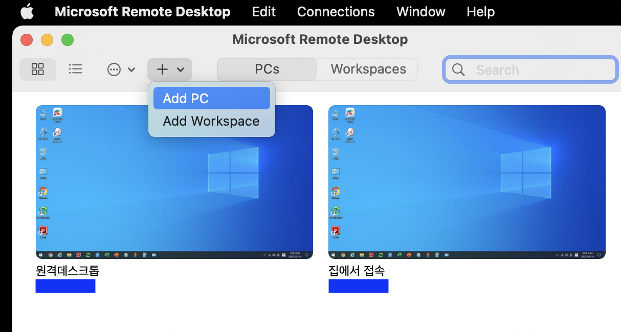 이제 본격적으로 맥에서 원격 데스크톱 접속을 통해 Windows 10을 사용해 보자. 먼저, 맥(MacOS-맥북,맥미니,아이맥 등)에서 원격 데스크톱 앱으로 Winmdows 10 PC 접속하는 방법은 다음과 같다.