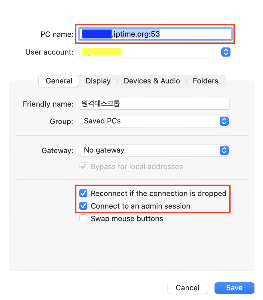 나름의 경험을 바탕으로 설정을 완료했지만, 무슨 일인지 접속에 계속해서 실패했었다. 구글링을 통해 간신히 그 이유를 알아냈는데, 의외로 허무한 내용이었다. 포트포워드 설정을 할 때 외부 포트 번호는 뭘로 해도 관계없지만, 내부 포트 번호를 3389로 설정해야된다는 것이었다. 이게 맥미니(2014, i5)에만 해당하는 문제인지는 모르겠지만 어쨌든 3389로 설정하니 접속이 안 되던 문제(오류코드 0x704)가 해결되었다. 이 글을 보는 사람들은 나처럼 답답한 상황을 겪지 않았으면 하는 바람이다.
