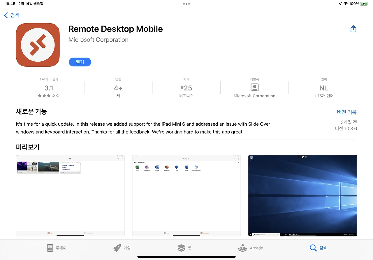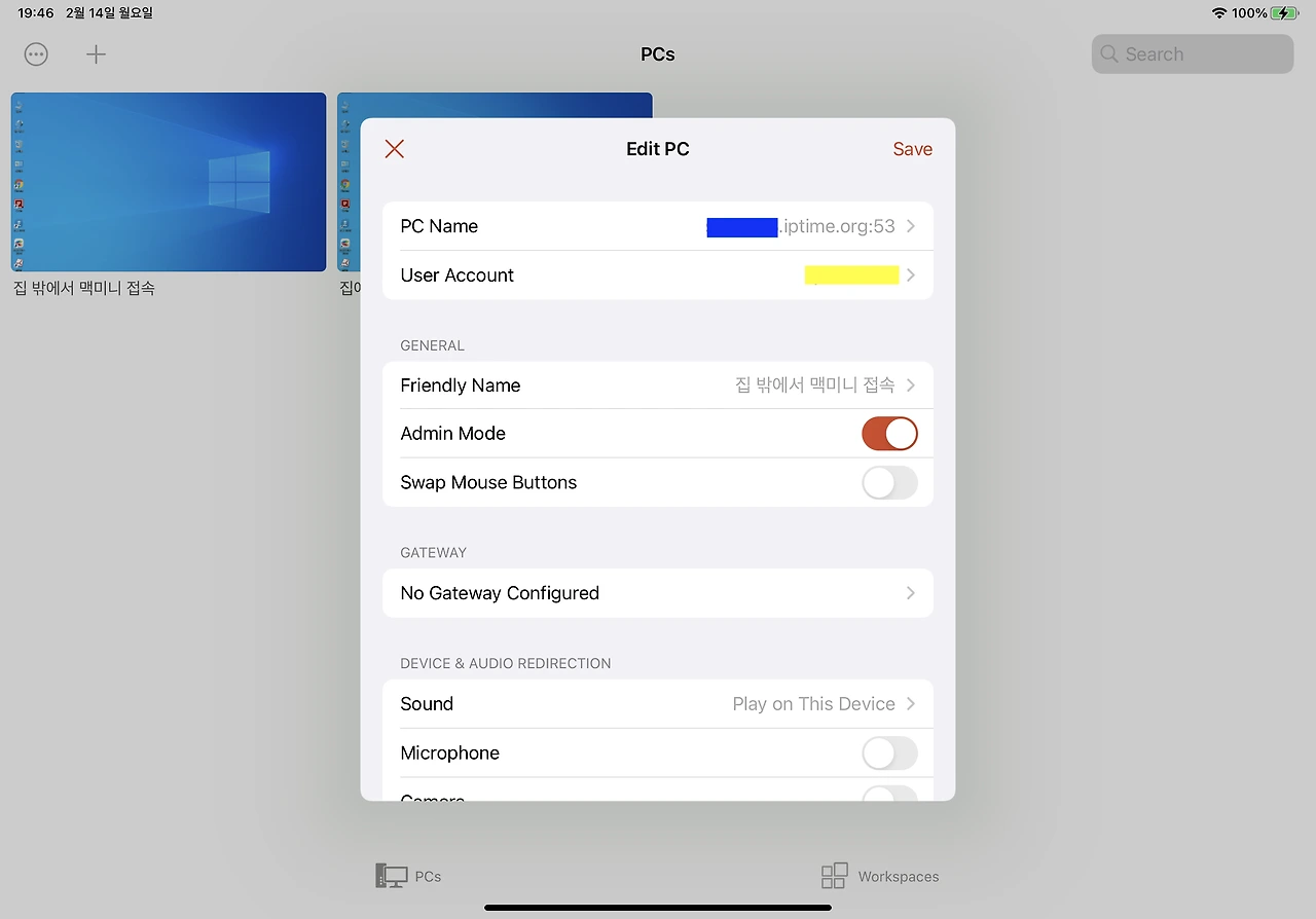 다음으로, 아이패드와 아이폰에서 Microsoft Remote Desktop 앱을 설치하여 Windows 10 PC에 접속하는 방법이다. 전체적인 인터페이스와 설정 방법은 맥에서 설정하는 것과 거의 동일한 과정이다.