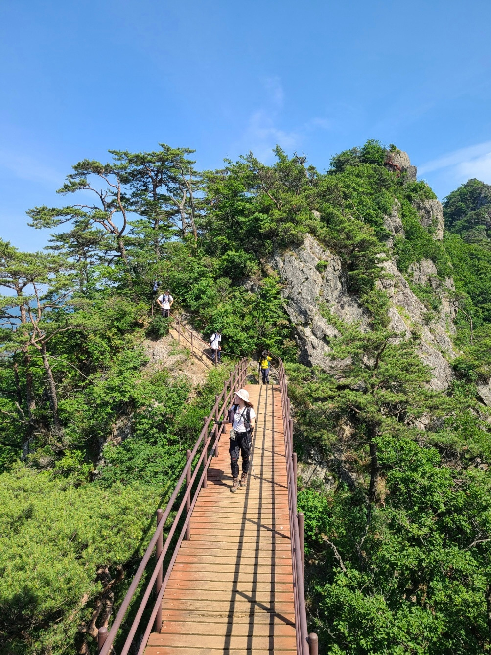 다른 등산객에게 물으니 정상은 멀었지만 중봉은 금방이라는 대답이 돌아왔다. 정상까지 가려는 부담이 없으니 오히려 여유가 생겼다. 중간중간 사진을 찍고, 다른 등산객에게 인증샷을 부탁하기도 했다. 충분히 쉬며 에너지를 보충했더니, 중봉까지 오르는 길이 힘들지 않았다.