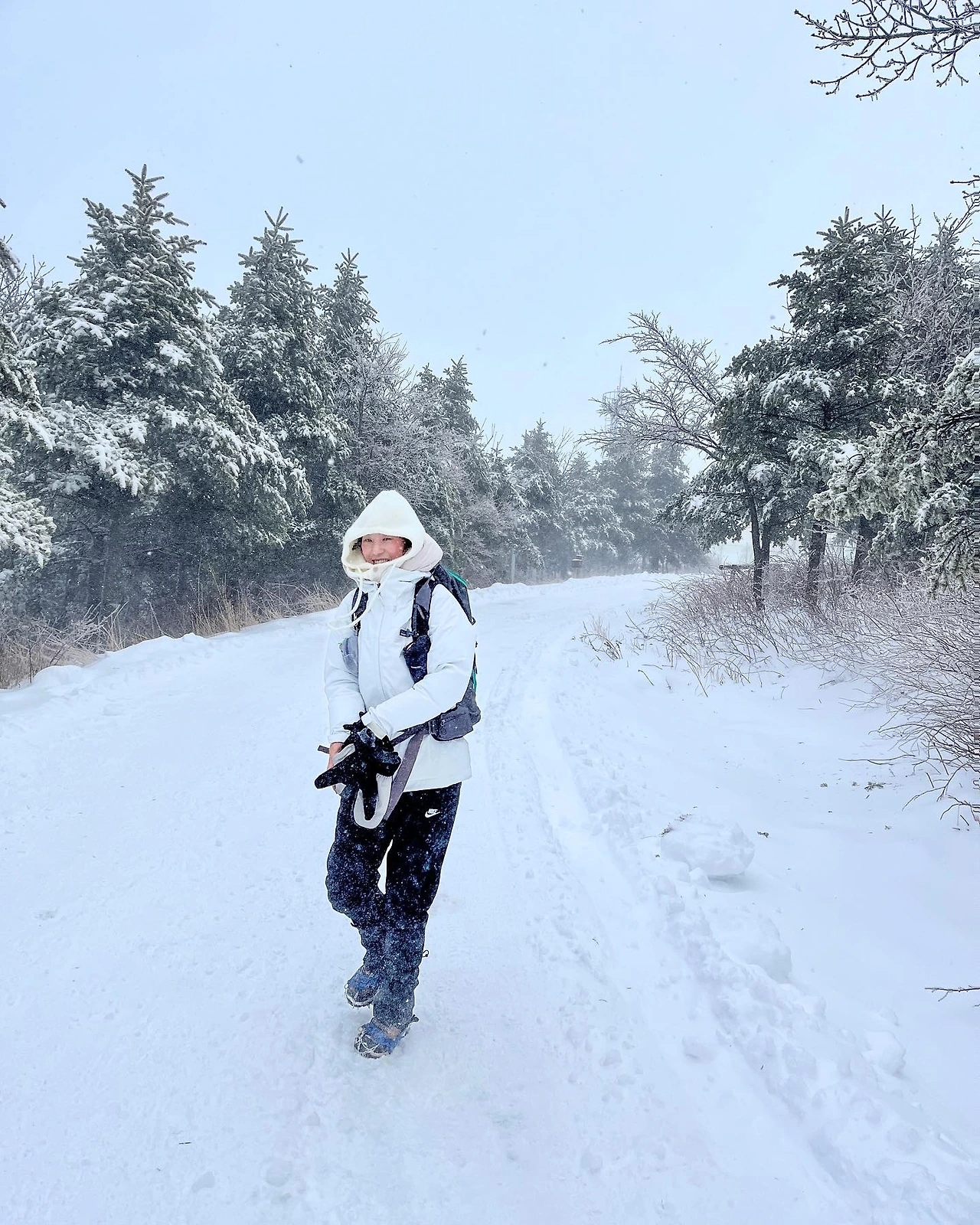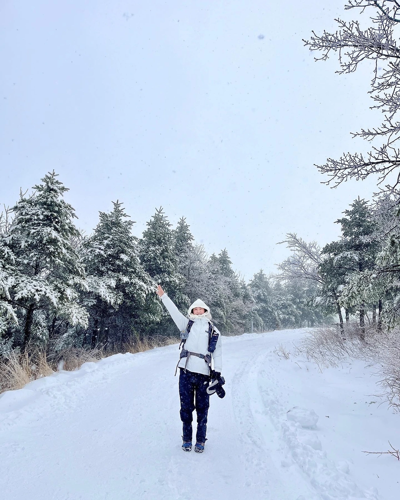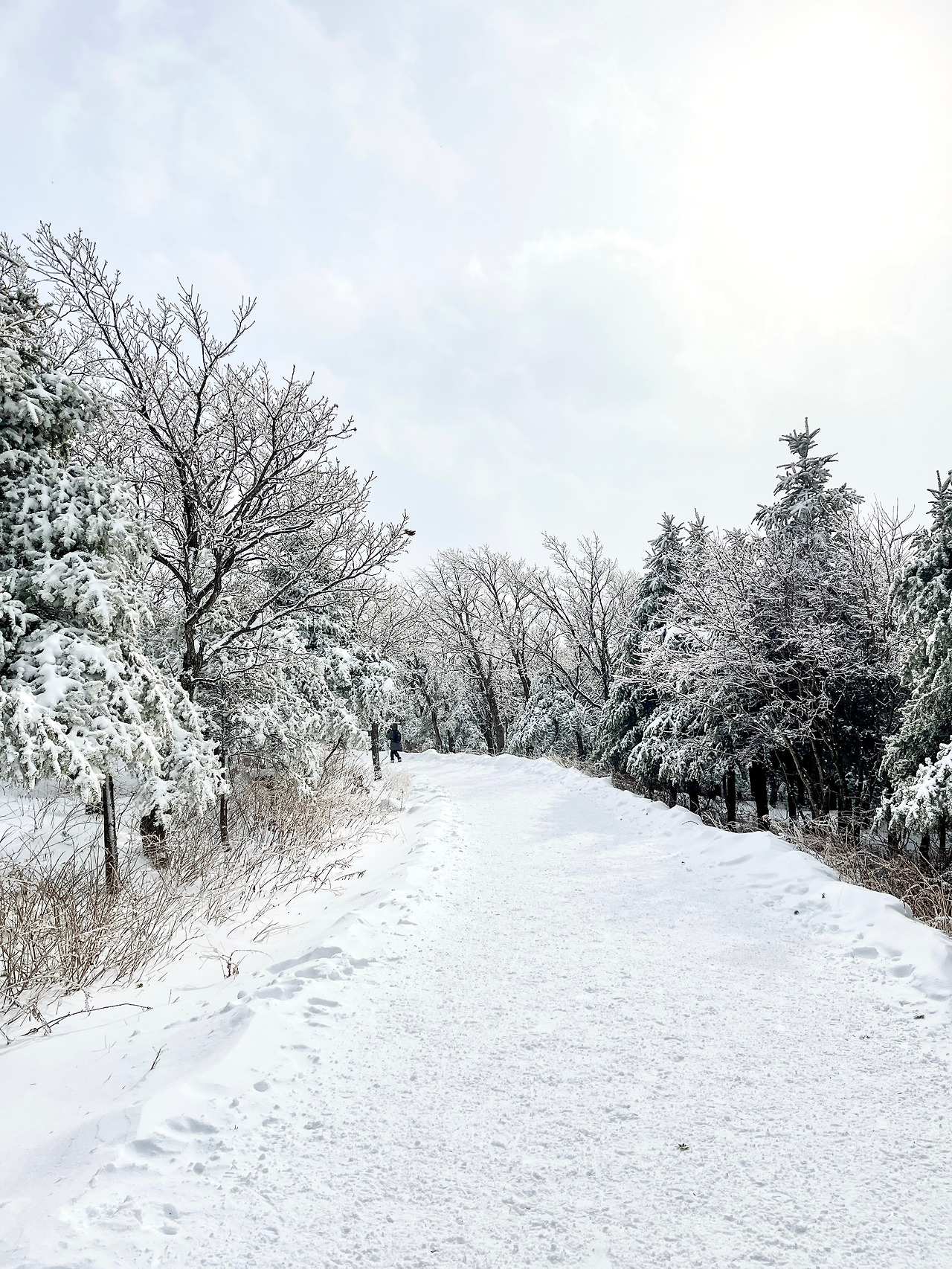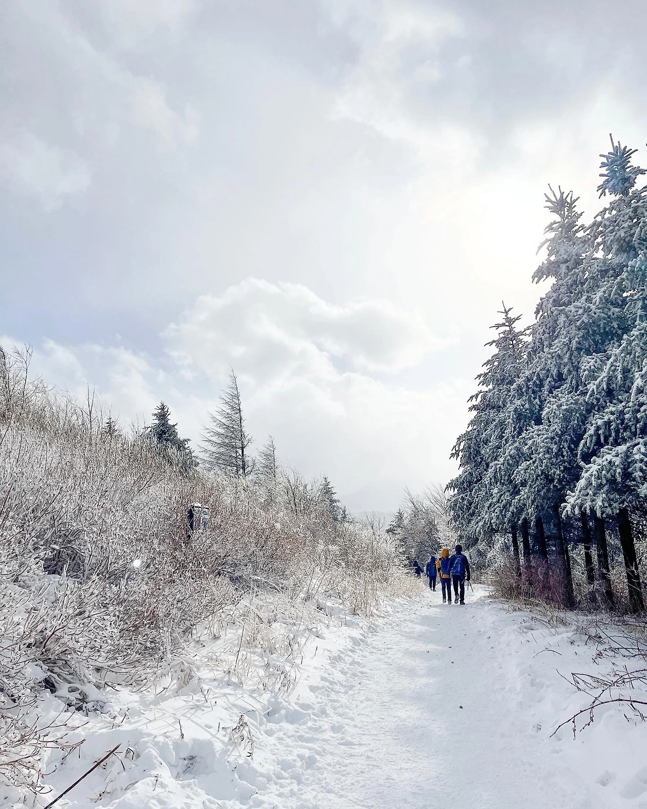 막상 도착해서 보니 선자령의 설경은 기대 이상이었다. 등산스틱이 필요 없을 만큼 경사가 완만한 길에, 눈이 소복이 쌓인 풍경은 그야말로 동화 속 한 장면 같았다.