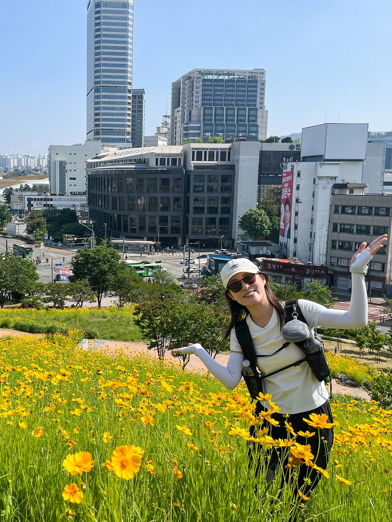 낙산공원에서 인증을 하고 흥인지문성곽공원을 지나는 길에 노란색 금잔화가 파도처럼 넘실거렸다.