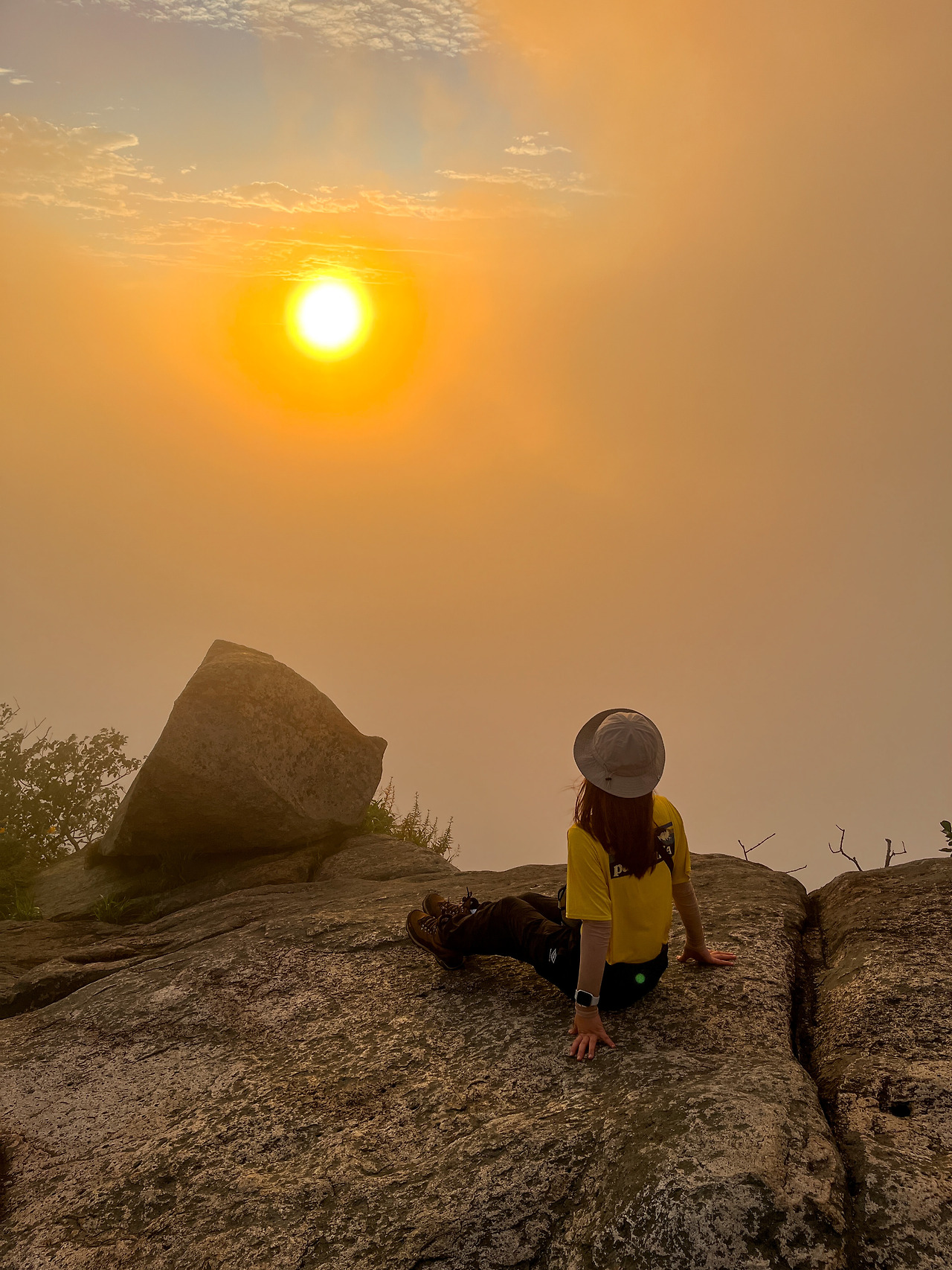 그리고 정상 바로 직전인 '통천문'에 도착하니 해가 빼꼼 머리를 내밀었다. 나는 정상까지 가려면 아직 시간이 더 필요한데, 멋지게 떠오를 준비를 하는 해를 보니 마음이 점점 더 조급해졌다.
