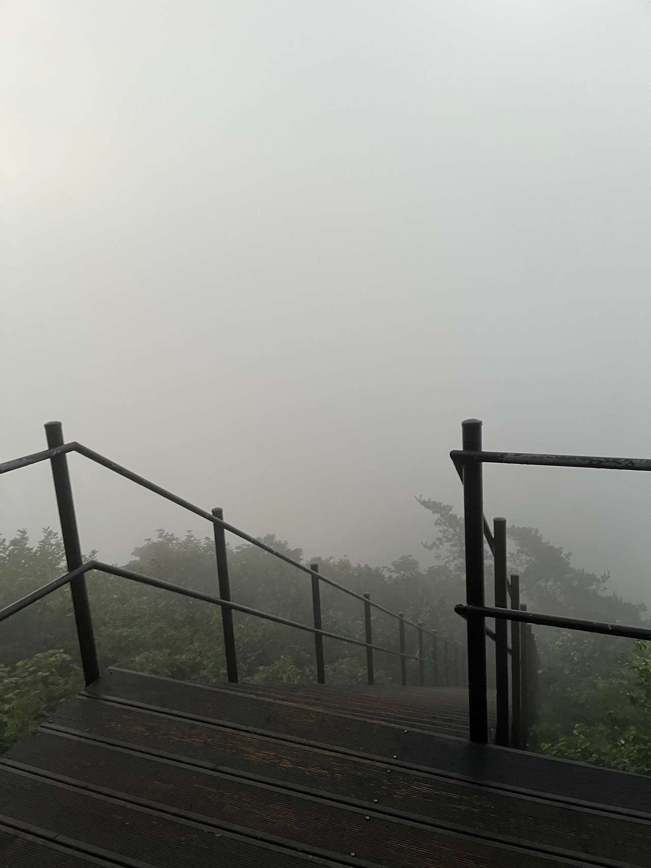 그렇게 서로 격려하고 오르다 보니 어느덧 머리 위에 있는 나무들이 하나씩 사라지고, 하늘이 보이기 시작했다. 그리고 하늘이 서서히 밝아지기 시작해 헤드랜턴을 끄고도 자유롭게 걸을 수 있게 되었다.
