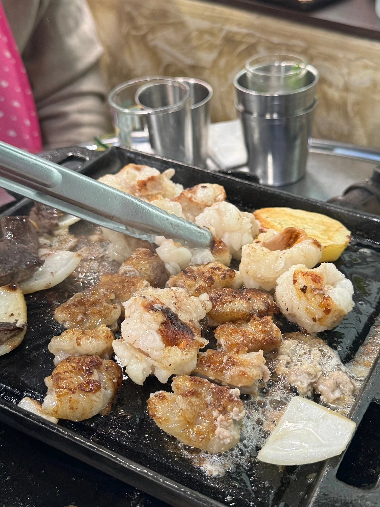 하지만 이까짓 가격 때문에 외식의 재미를 포기할 수 없다. 아까 맛 예찬에 이어 이유를 덧붙이자면 식사 전부터 후까지의 과정이 즐거운 음식이라는 것이다. 소곱창 구이는 주로 다른 이들과 함께 먹으러 가는데 모임을 갖는 기쁨이 크다. 친구를 기다릴 때의 설렘부터 북적북적한 공간에서 내 소리 네 소리 섞으며 나누는 대화, 반주를 곁들여 유쾌해진 기분까지. 기분 좋은 저녁을 후회 없이 보내면 친구와 헤어지는 일도 아쉽지 않다.