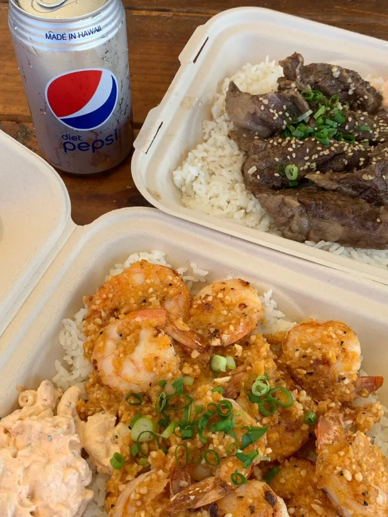여태껏 먹은 버터갈릭새우 중 가장 맛있게 먹었던 곳은 바로 하와이. 하와이에서도 카후쿠의 새우 요리가 유명한데 이곳에 새우 양식장이 있어서라고. 나는 카후쿠의 Da Bald Guy란 푸드트럭에서 먹었는데 일회용기에 담긴 평범한 덮밥처럼 보이지만 하와이를 여행하며 먹었던 음식 중 가장 맛있었던 ‘요리’였다.