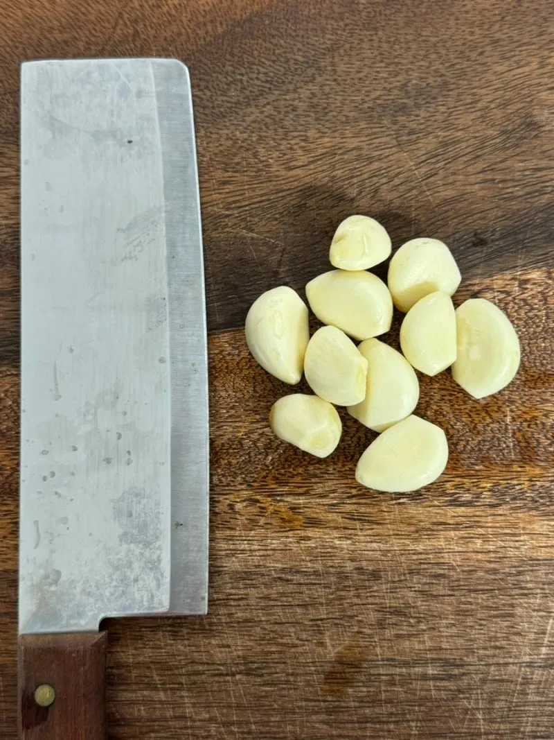 2. 약불에 버터 1T를 녹인다. 녹인 버터에 다진 마늘 2T를 볶는다.