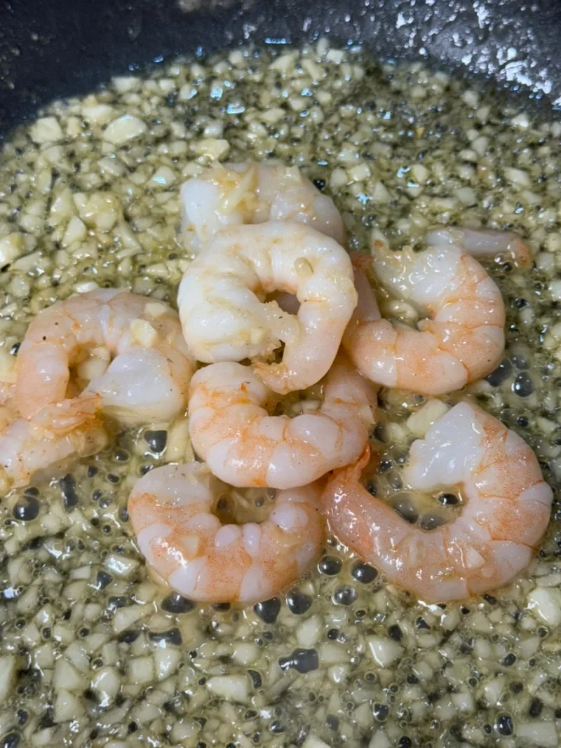 3. 마늘 향이 올라오면 새우 8마리를 볶는다.
