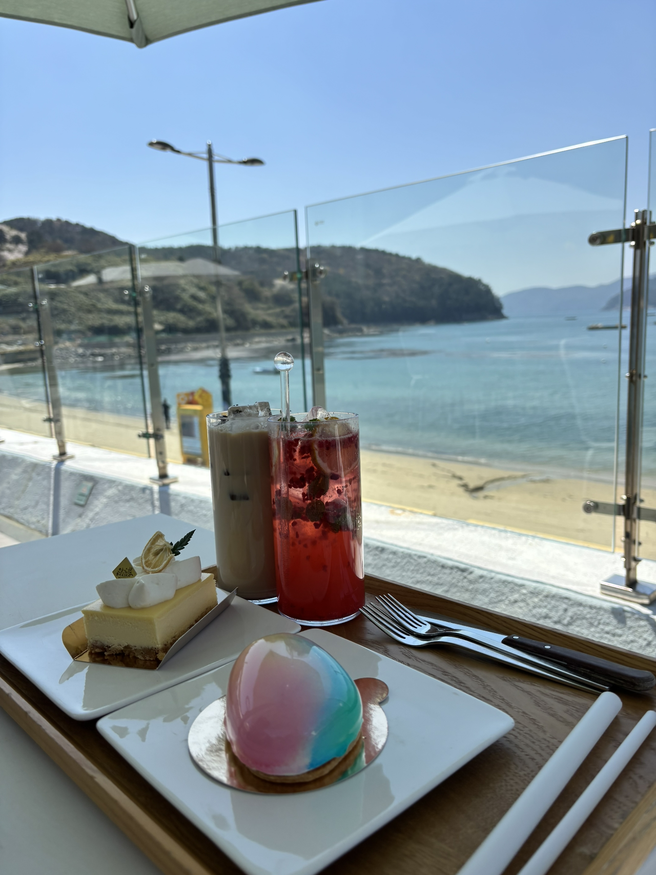 바다 보이는 카페에 앉아 커피 마시며 조용히 앉아 있었는데, 갑자기 옆에서 “야, 너 피곤해 보인다” 별말 아닌데 묘하게 무지갯빛 케이크 앞에 두고 둘 다 아무 말 없이 찍기만 함. 맛있냐고도 안 물어봤다. 그냥 웃음으로 다 전해졌다.