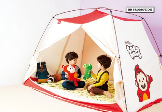 최근 이랜드그룹은 소셜벤처 (주)바이맘(By Mom)과 함께 의미있는 콜라보를 진행했습니다. 바로 코코몽 캐릭터가 새겨진 룸텐트(Room Tent), 코코몽 캐릭터 텐트입니다. 바이맘(By Mom)은 원래 홀로 사시는 어르신 등 에너지 빈곤가구가 추운 겨울을 따뜻하게 지내도록 돕는 '룸텐트'를 개발해 판매하고 있는 한국의 대표적인 소셜벤처입니다. 사용자는 텐트 안에 보호된 따뜻한 공기를 통해 난방비를 절약하고, 에너지 절약을 통해 환경보호에 기여하게 되고, 아이들은 자신만의 공간으로 룸텐트를 꾸밀 수도 있습니다. 2016년 '원숭이띠' 해을 맞이해 코코몽 캐릭터 텐트는 곧 열릴 서울캐릭터페어(2015.12.16-20 / 코엑스)에서부터 판매가 시작될 예정입니다.