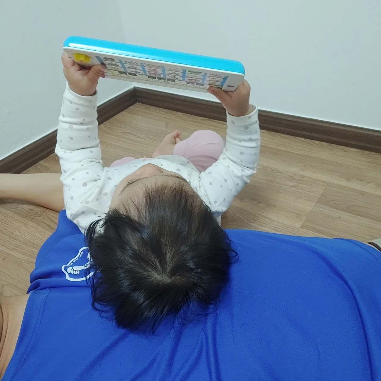 잠자는 나를 깨우지 않고 자고 있는 머리맡에서 논다. 자는 척하면 배 위를 올라타 껑충껑충 올랐다 내렸다 한다. 그러다가 가슴에 파고들어 안긴다. 까르르 웃다가 눈 맞추고 미소 짓는다. 손가락으로 코를 꼭꼭 누르며 장난친다. (요즘 "머리 어깨 무릎 발" 노래를 배우고 있다.) 매일 딸의 애교로 기분 좋은 아침을 맞이한다.