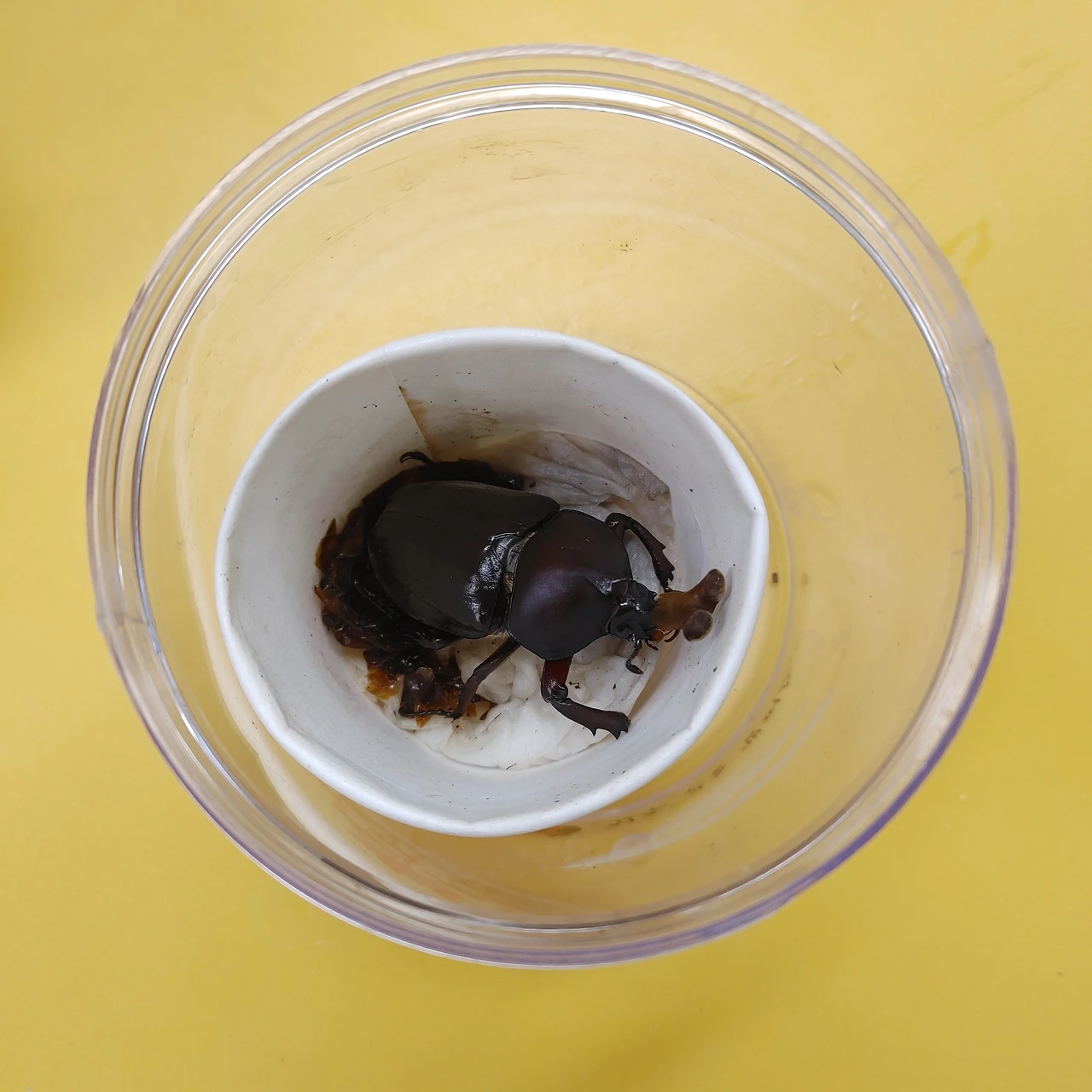 드디어 교육복지실에서 키우는 장수풍뎅이 애벌레가 성충이 되었다. 지난주 금요일까지만 해도 언제 허물 벗을지 모를 번데기였다. 주말 사이 탈피한 것이다. 한 마리는 애벌레 때 죽고, 다른 한 마리는 번데기 때 죽었다. 그래서 마지막 남은 한 마리가 설마 성충이 될까 싶었다.