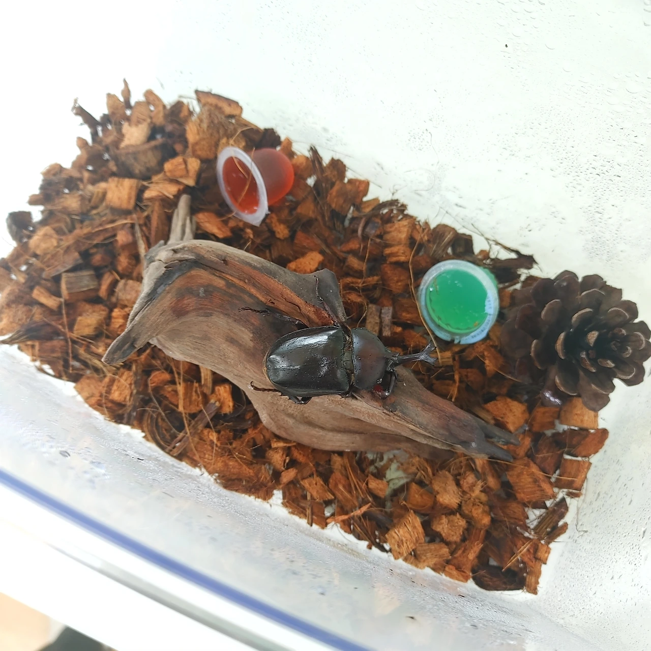 원래 암수 한쌍 애벌레를 성충으로 키워 다시 알을 낳게 해 부화시키려고 했다. 하지만 애벌레 두 마리가 죽어 고민했다. 수컷 혼자 쓸쓸히 생애를 마감할 수 없어 암컷 성충을 샀다. 암수 성충을 함께 키울 사육통도 준비 끝. 이제 발효톱밥만 배송되면 성충 암수 한쌍을 합사 할 수 있다. 내일이 되면 암수가 합사 하는 역사적인 날이 되겠지. 보통 20개 정도 알을 낳는다는데 부디 장수풍뎅이 한살이를 계속 반복할 수 있다면 좋겠다.