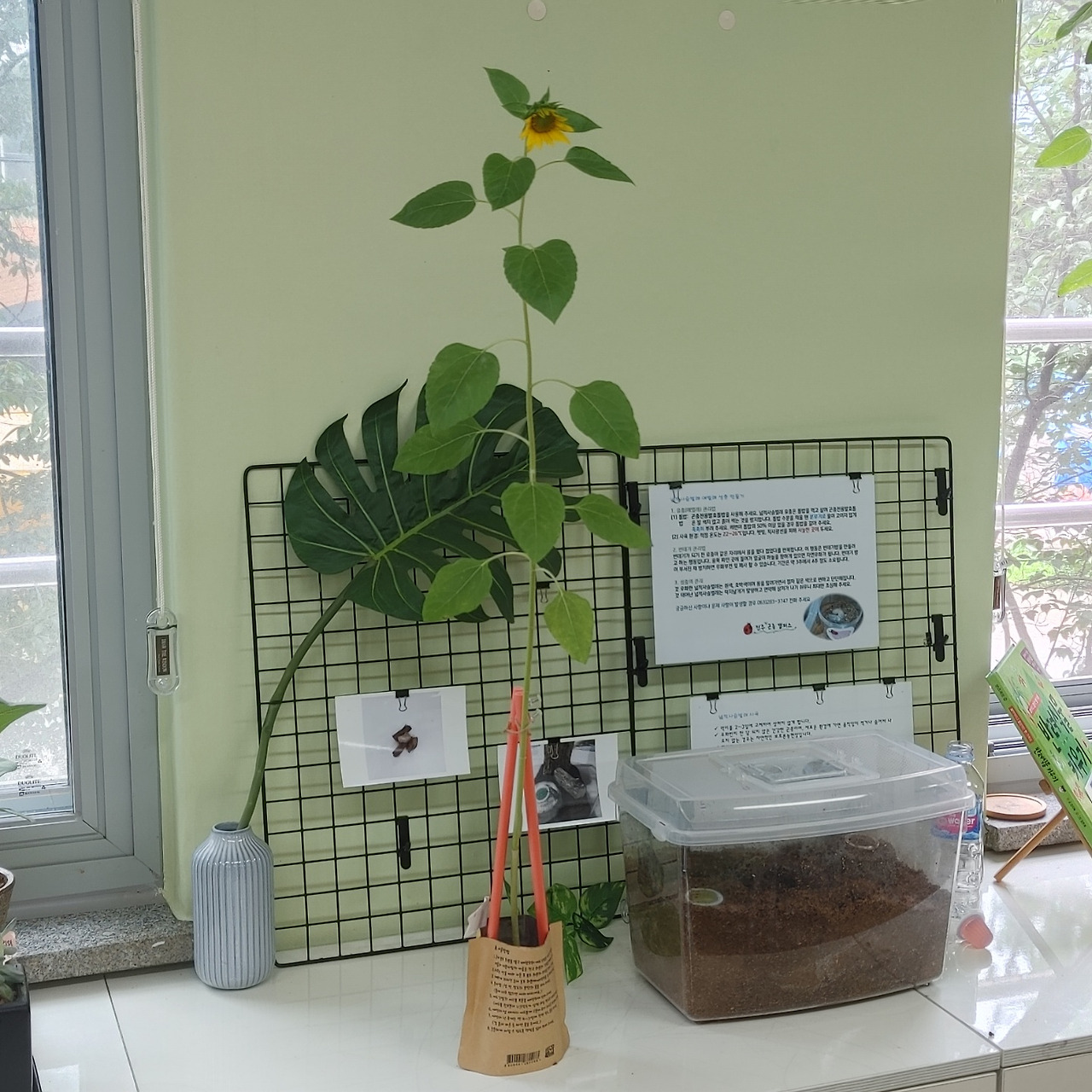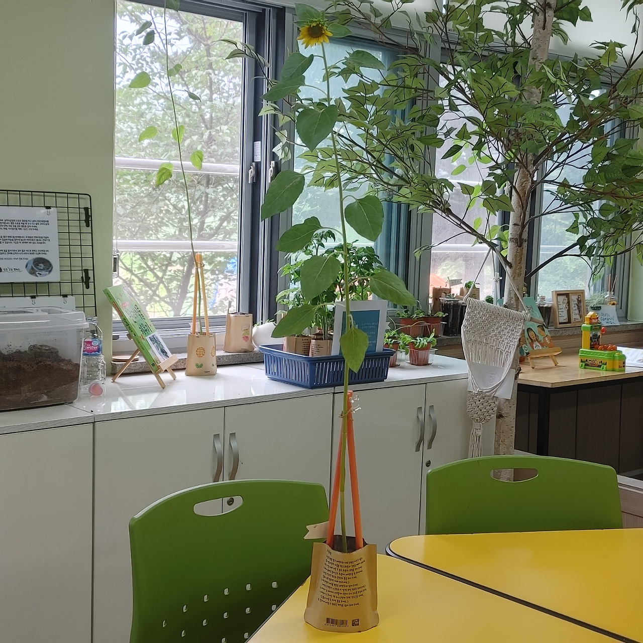 김이 모락모락 피어오르는 커피 잔을 들고 아이들이 심어 놓은 화분을 보러 창가에 갔다. 이러려고 반려 식물을 키우는 거겠지. 한동안 멍하니 파릇파릇하게 돋아난 잎을 바라봤다. 금방 마음의 안정을 찾았다. 무심코 해바라기 줄기 따라 고개를 들었다. 이게 무슨 일이야, 줄기 사이로 노란색 꽃잎이 보였다.