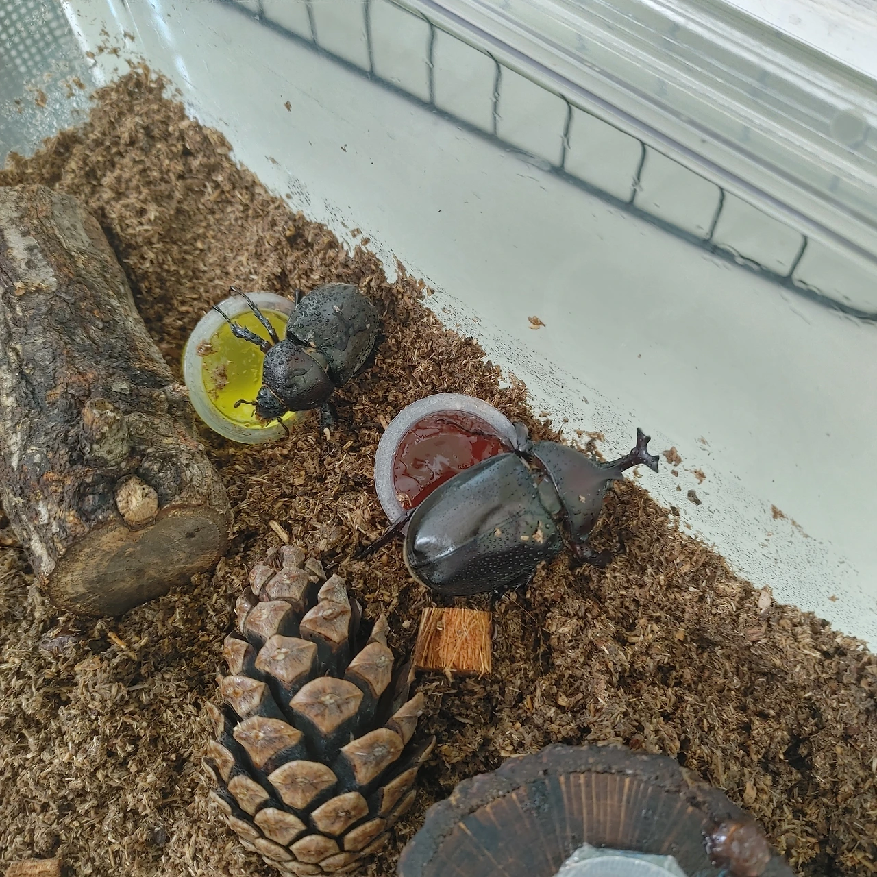 아이들과 함께 암수가 짝짓기 하는지 관찰했다. 숙맥인 건가 수컷은 암컷을 봐도 반응이 없다. 연신 흙속에만 비집고 들어갔다. 반면에 암컷은 뭐가 불만인지 예민하게 굴었다. 자기 몸에만 닿으면 두 앞다리를 번쩍 들어 올렸다. 나라도 위축되겠다. 서로 관심이 없고 곤충 젤리를 먹느라 바빴다. 어디 그래서야 짝짓기를 하고 알을 낳겠나 싶다. 암수 장수풍뎅이의 반응을 보고 살짝 걱정됐다. 수컷, 용기를 내봐.