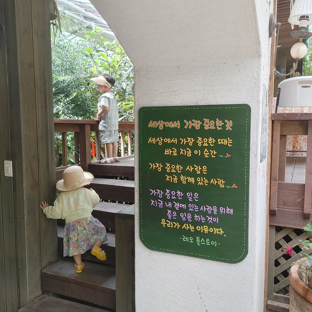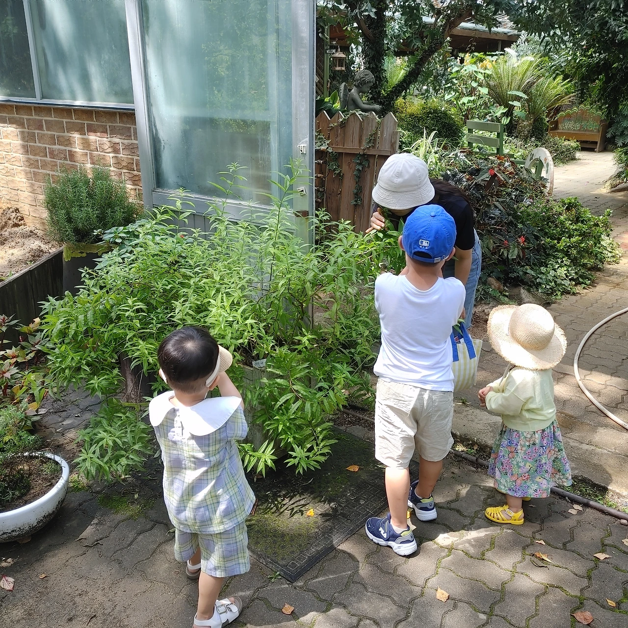 산책길을 따라가면 다양한 꽃과 식물을 볼 수 있다. 특히 레몬 베버나는 잎을 만지면 새콤하고 상큼한 레몬향이 온몸에 묻어나는데 금세 정신이 맑아졌다. 또한 아기자기한 조형물이 곳곳마다 있기 때문에 사진 찍기 좋다. 가장 안쪽에 나무로 우거진 숲 속에 차가운 계곡물이 흘러서인지 코끝이 시원했다. 발끝이 시릴 정도로 차가웠지만 아랑곳하지 않고 발 담그고 놀았다. 정말이지 계곡물 안에 발 담글 수 있게 둔 나무 의자는 신의 한 수다.