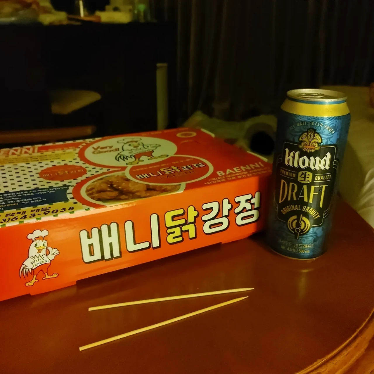 여행 내내 신나게 놀았던 것은 빠른 육퇴 후 맥주 한 캔을 마시기 위함이다. 정작 여행 내내 일찍 잠든 아내 덕에 맥주도 나도 김 빠졌다. 어찌 숙소에 와서 잠만 잘 수 있는가. 난 또 뭘 기대했는가. 하하. 혼자 닭강정을 먹으며 맥주를 마셨지만 두 캔도 다 못 마시고 버리고 말았다. 혼자 먹으니 맛이 없더라.
