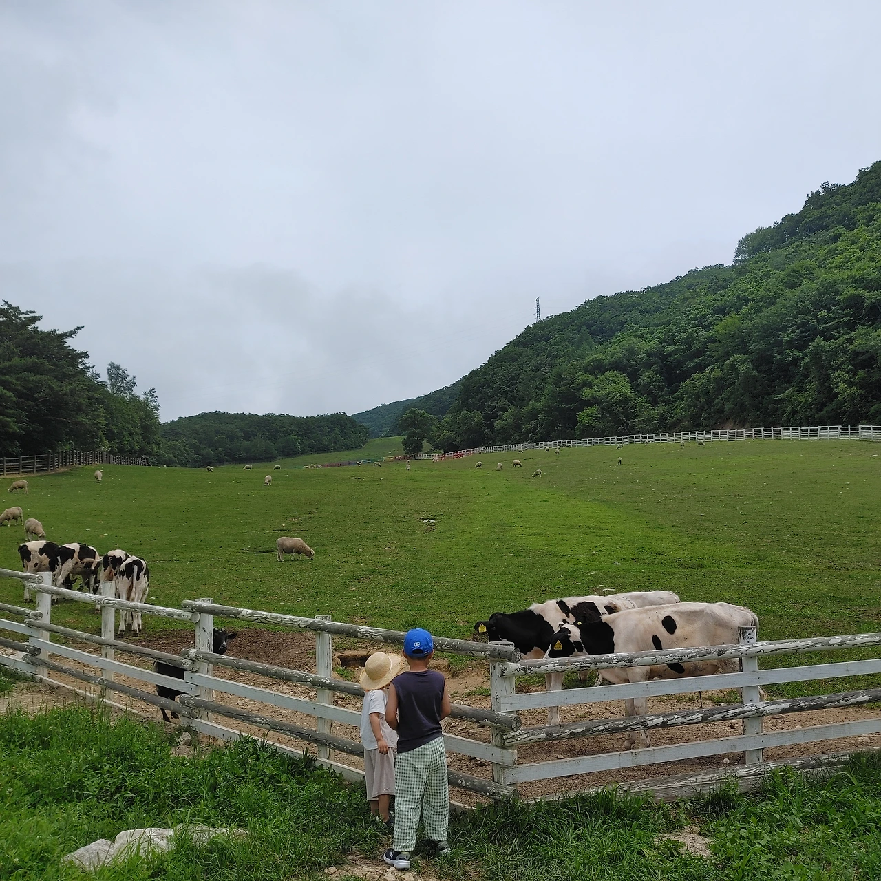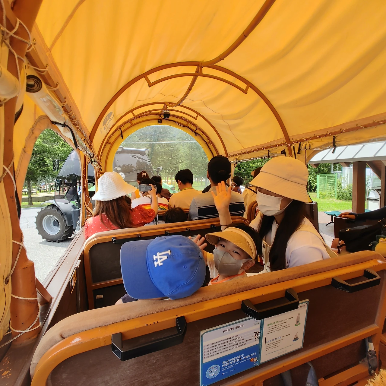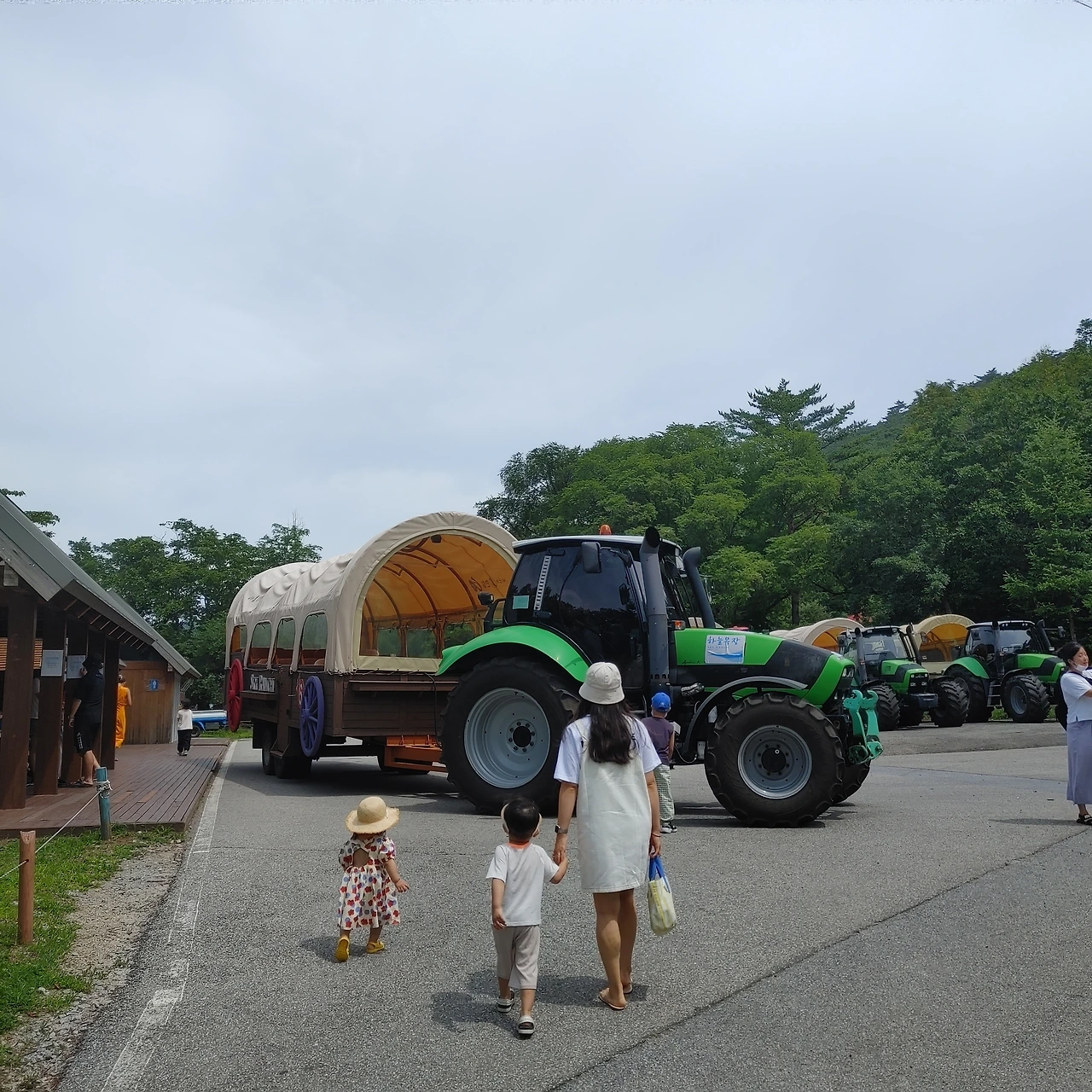 평창에는 목장이 많다. 그중에 삼양목장, 대관령 하늘목장, 대관령 양떼목장이 유명하다. 각각의 홈페이지에 들어가 어떻게 운영되는지 알아봤다. 삼양목장은 세 개 목장 중에 가장 큰 규모이지만 도보로만 이용 가능해 아이들을 데리고 가기가 어려웠다. 다른 목장의 체험거리를 찾던 중 대관령 하늘 목장은 1시간 간격으로 트랙터 마차를 운영했다. 또한 승마체험과 양 먹이 주기 체험도 할 수 있어 아이들 데리고 가기 가장 좋았다. 아니나 다를까 아이들은 커다란 트랙터 마차를 탈 때 가장 좋아했다.