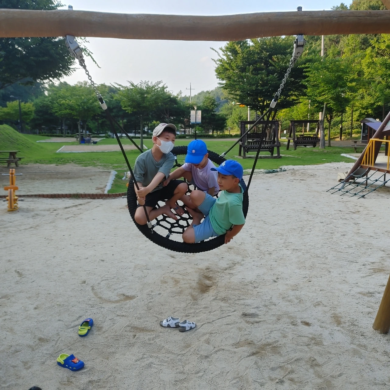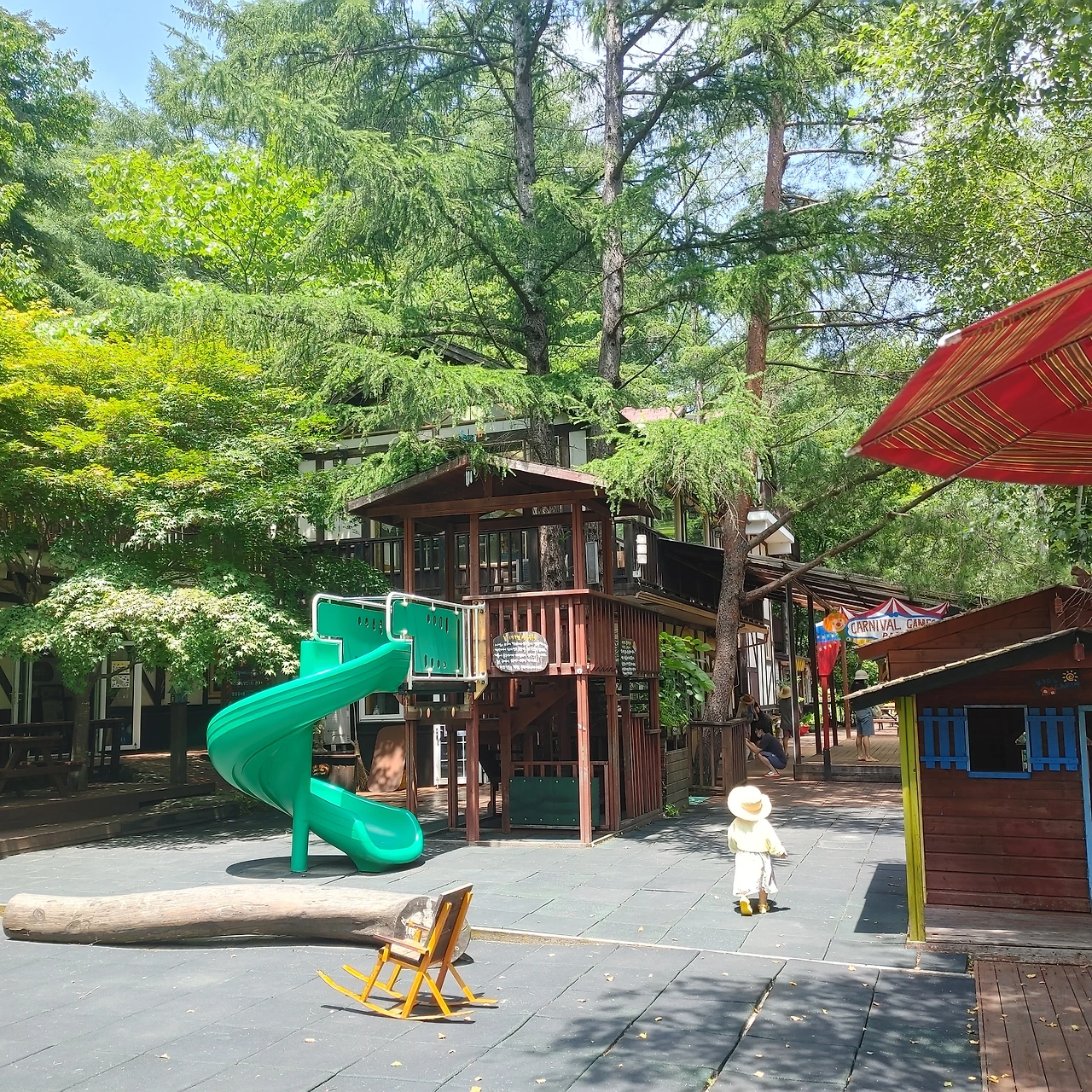 아이들과 트랙터 마차 승차장 앞에 있는 놀이터에서 놀았다. 놀다가 더우면 한쪽에 커피숍, 쉼터가 있어 햇볕을 피해 쉴 수 있다. 하늘목장에서 판매하는 요거트와 아이스크림 사 먹을 수 있다. 그냥 기념으로 하늘목장 요거트라도 사 올걸 그랬나. 맛이라도 봤어야 했는데 지금 생각해보니 아쉽다.