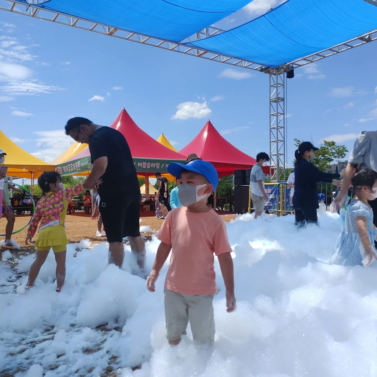 아이들이 버블 놀이를 좋아했다. 버블과 물대포를 쏘니 마치 싸이의 흠뻑쇼 같았다. 아이들 옷이 비누 거품과 물로 흠뻑 젖었으니 흠뻑쇼 맞네. 진행자가 있어 흥을 돋구니 더 신났다. 아내의 훌라후프 대회 선전은 그날 최고의 이벤트였다. 시상할 줄이야 꿈에도 몰랐다.