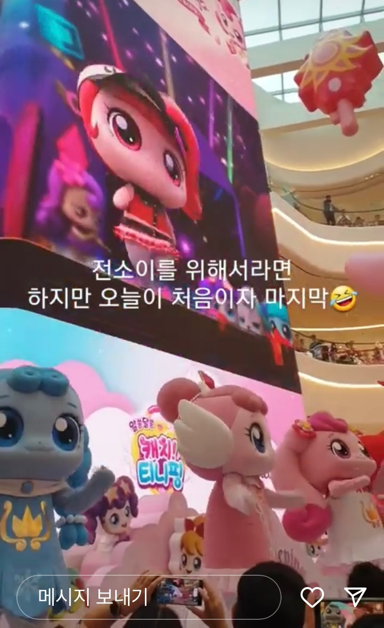 다른 것은 몰라도 싱어롱 이벤트는 참여하자. 티니핑 인형탈이 OST에 맞춰 춤을 춘다. 한 티니핑은 진짜 혼신을 다해 춤춘다. 콘서트를 방불케 하는 분위기다. 네다섯 살 여자 아이들의 떼창을 듣다 보면 딸바보 미소가 지어진다. 분위기만 보면 초통령이 뽀로로에서 티니핑으로 바뀌었다. 한 곡 더 한 곡 더 손뼉 치는 아이들 보는 재미가 솔솔 하다.