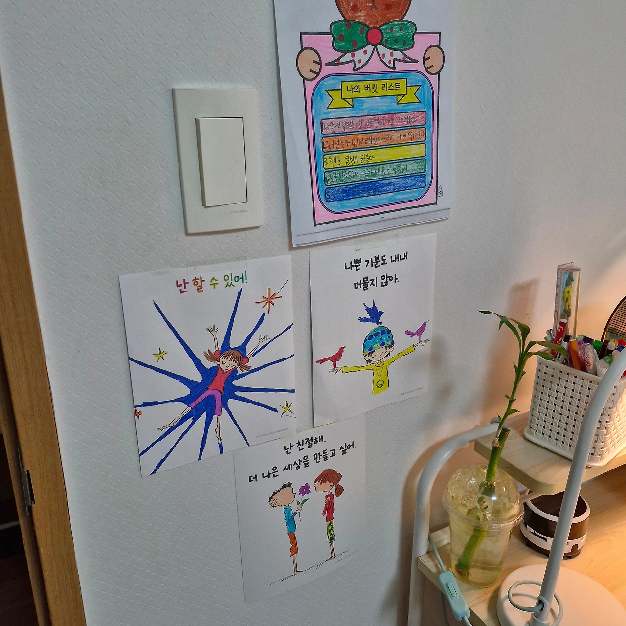 첫째 아들이 자기 방에 버킷리스트를 떡하니 붙였다. 학교에서 '나의 버킷리스트'를 적었던 모양이다. 참, 알록달록 예쁘게도 꾸몄다. 벽 가까이 고개를 내밀고 아들이 적은 글을 가만히 바라봤다. TOP5 안에 아들이 좋아하는 관심사를 엿볼 수 있다. 5개 버킷리스트 중 3개가 축구에 관한 내용이다. 요즘 아들은 축구에 푹 빠져 산다. 나중에 프랑스와 아르헨티나에 가겠다는 것은 아마도 음바페와 메시 때문일 것이다. 유치원 졸업식 때 수영 전문가가 되겠다는 아들이 축구 국가대표의 꿈을 꾼다. 두 번째 리스트에서 빵 터졌다. 레알 마드리드에서 뛰겠다는데 명문 구단인 것은 또 어떻게 알았을까. 음바페를 좋아해서 파리 생제르맹이라고 쓸 줄 알았다. 손흥민의 손가락을 다치게 한 이강인이 이제 싫어졌다고 말했던 아들, 축구에 진심이다. 버킷리스트를 붙여 놓은 아들에게 매일 아침 일어나 주문을 외우라고 말해줬다. "난 할 수 있어!, 꿈을 이룰 수 있어!"라고.