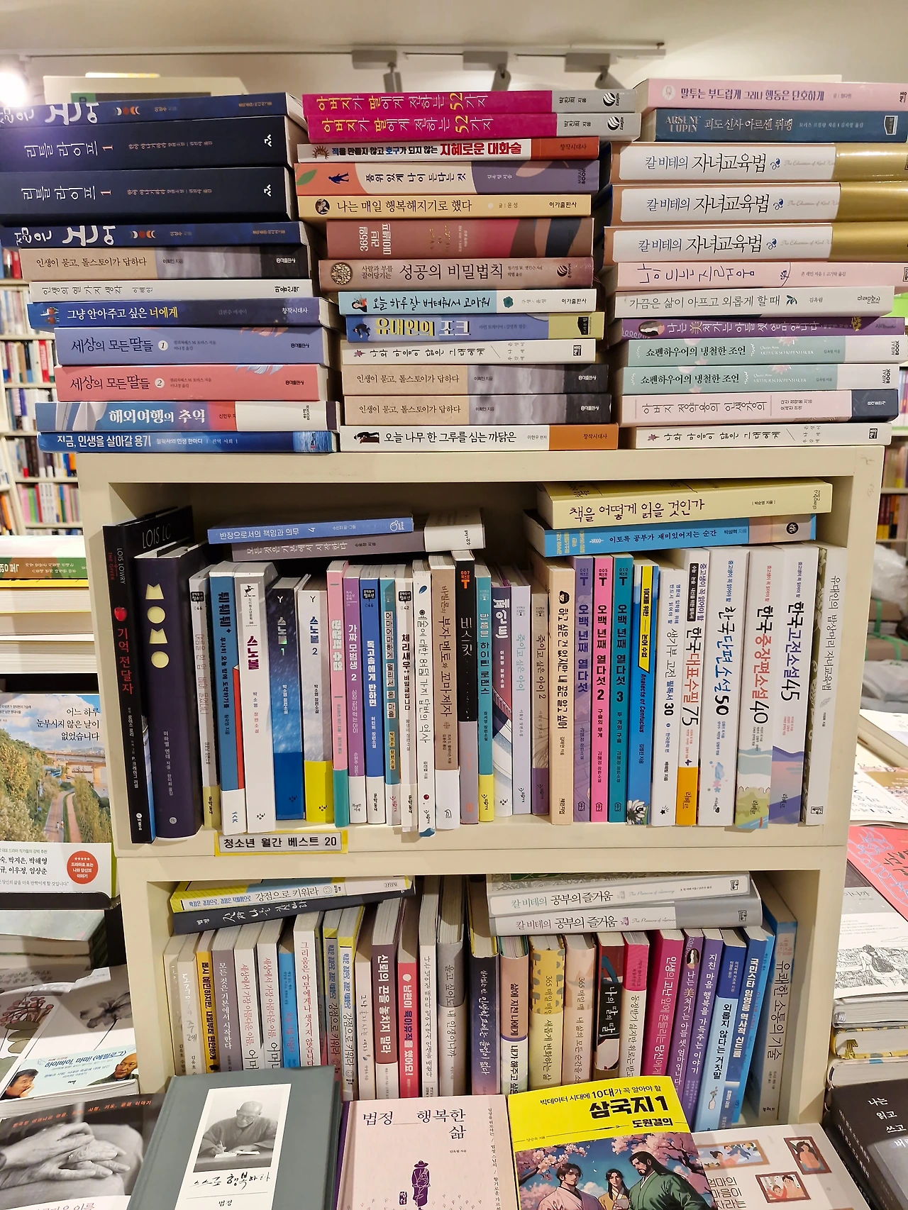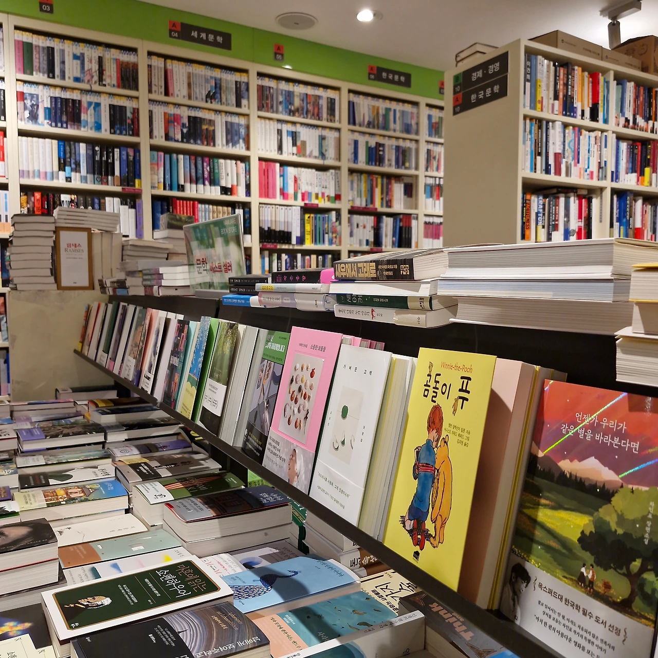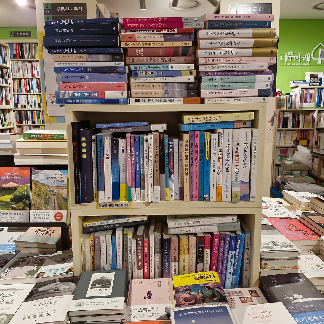 지난주 우연히 서울아산병원 지하에 있는 멀티 플라자에 들렀다. 옷 가게 옆에 있는 모닝글로리 문구점을 지나니 작은 서점이 있었다. 좁은 서가에 셀 수 없이 많은 책들이 진열되어 마치 지하철 상가에 있는 작은 서점과 같은 분위기였다. 책들은 출판사 ㄱㄴㄷ 순서로 책장에 꽂혀 있었고, 작은 매대 위에는 특정 분야 상관없이 책들이 여기저기 놓여 있었다. 매대가 작아서 그런지 같은 책들을 쌓아 놓았고 책들은 마치 산맥을 이루듯 길게 이어져 있었다. 높게 쌓여 있는 책들 사이를 거닐며 매대를 둘러봤다.