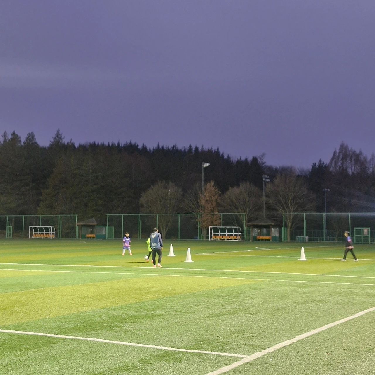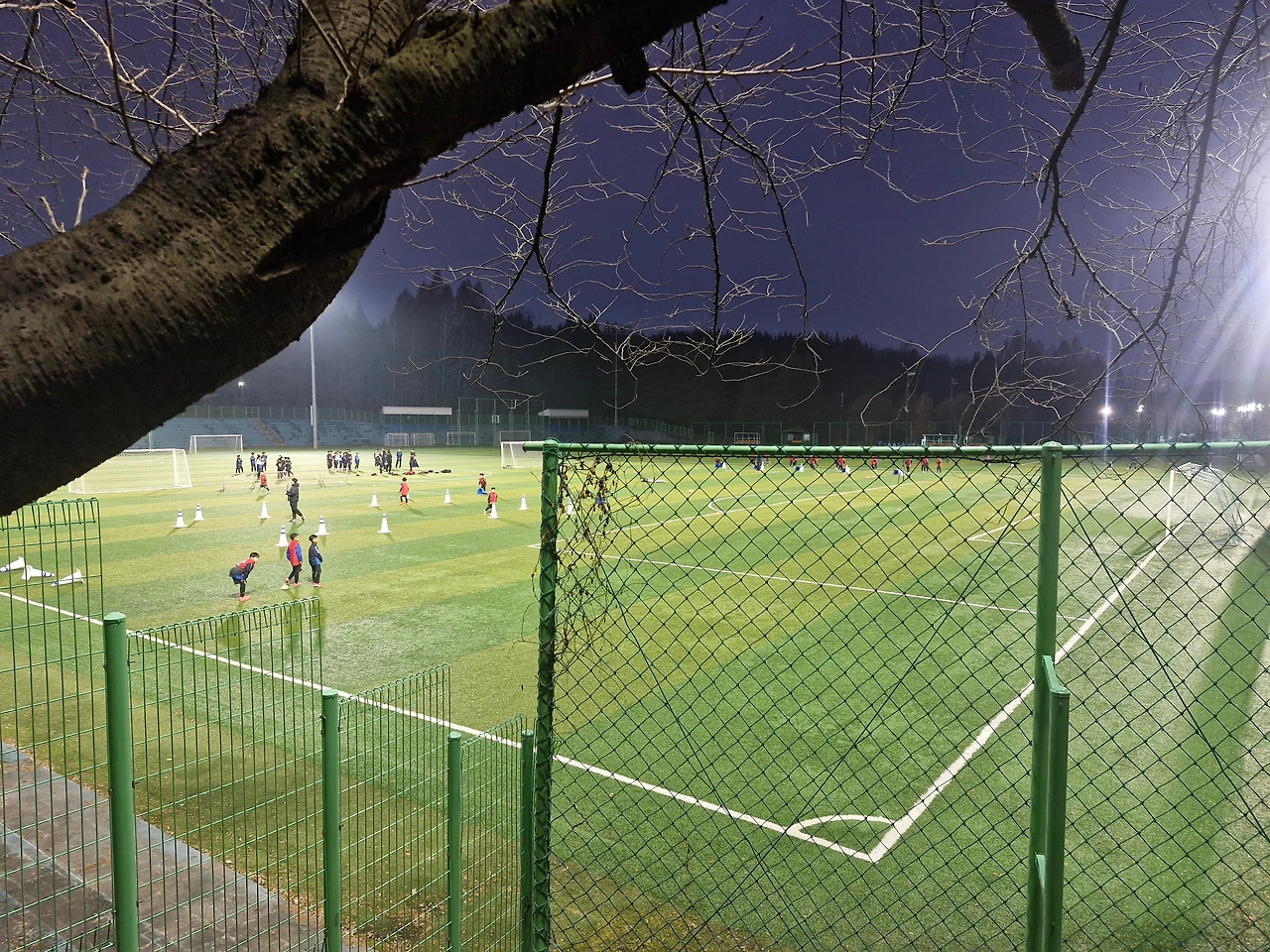 왼쪽 구장은 축구 학원을 다니는 선수반 아이들, 오른쪽 구장은 지자체에서 운영하는 취미반 아이들이다. 아들은 왼쪽 구장에 켜진 불빛을 조명 삼아 오른쪽 구장에서 수업을 받는다. 아무리 그래도 그렇지 민원을 넣을까 보다. 오늘은 두 명이 참여해 거의 1:1 지도를 받는 것 같다.
