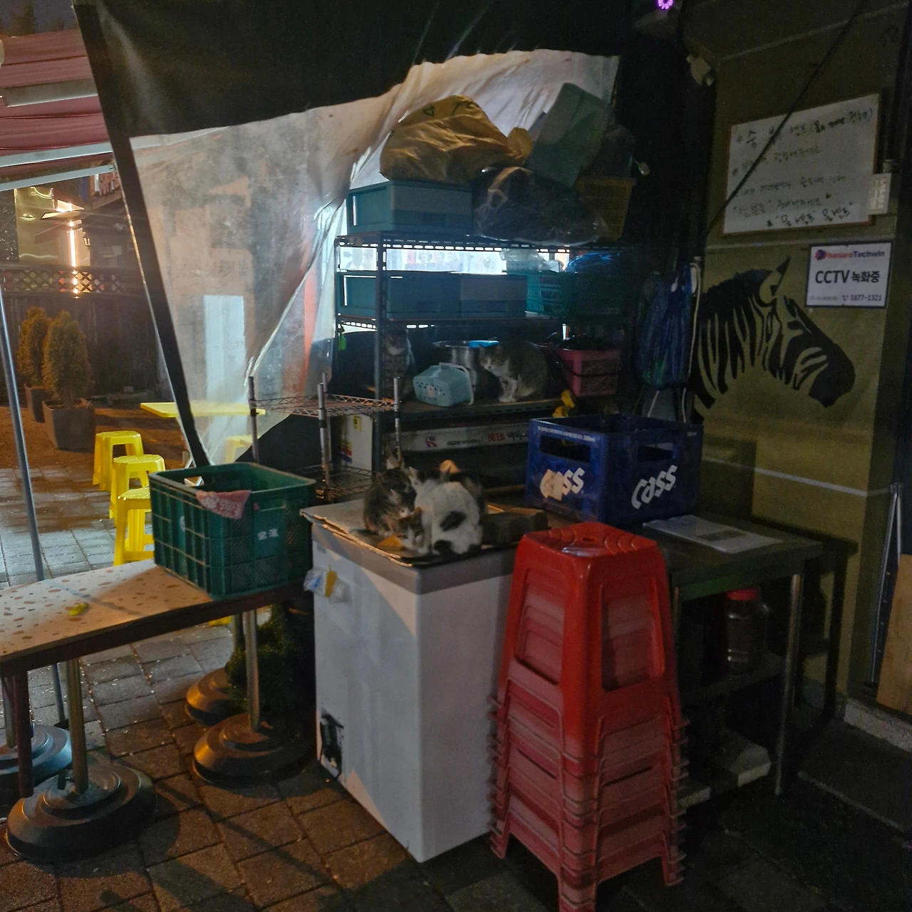 남아 있는 건 한강라면 무인 편의점과 사장님 마음대로 문을 여는 카페, 그리고 남은 포차 한 군데다. 그 가게에는 ‘개인 사정으로 12월 26일까지 쉽니다’라는 안내문이 붙어 있었다. 그곳에는 아기 고양이 네 마리가 서로의 체온에 의지한 채, 외로이 상점을 지키고 있었다.